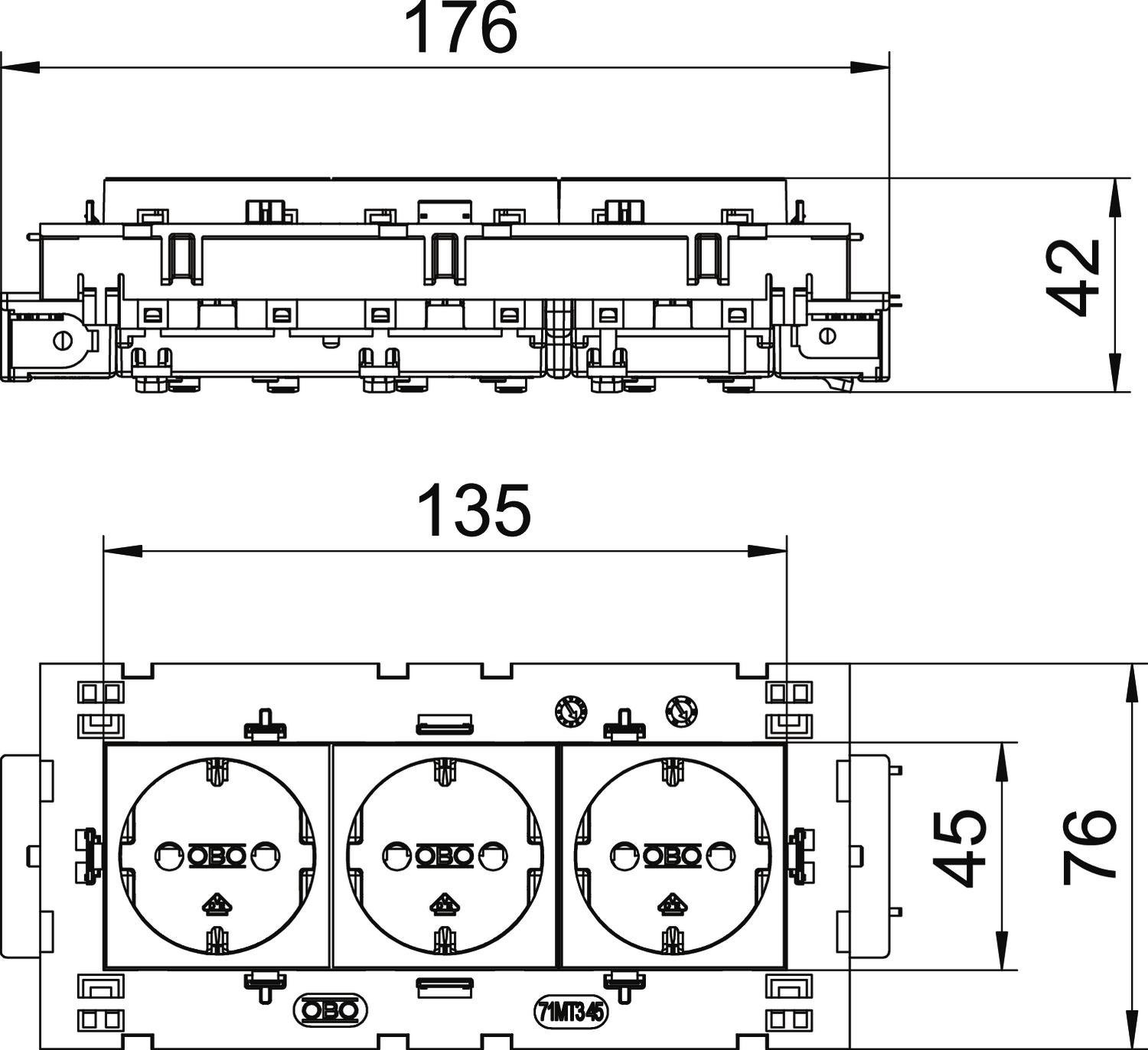 STD-D0C8 AL3 Gniazdo 0°, potrójne Connect 80 Connect 80