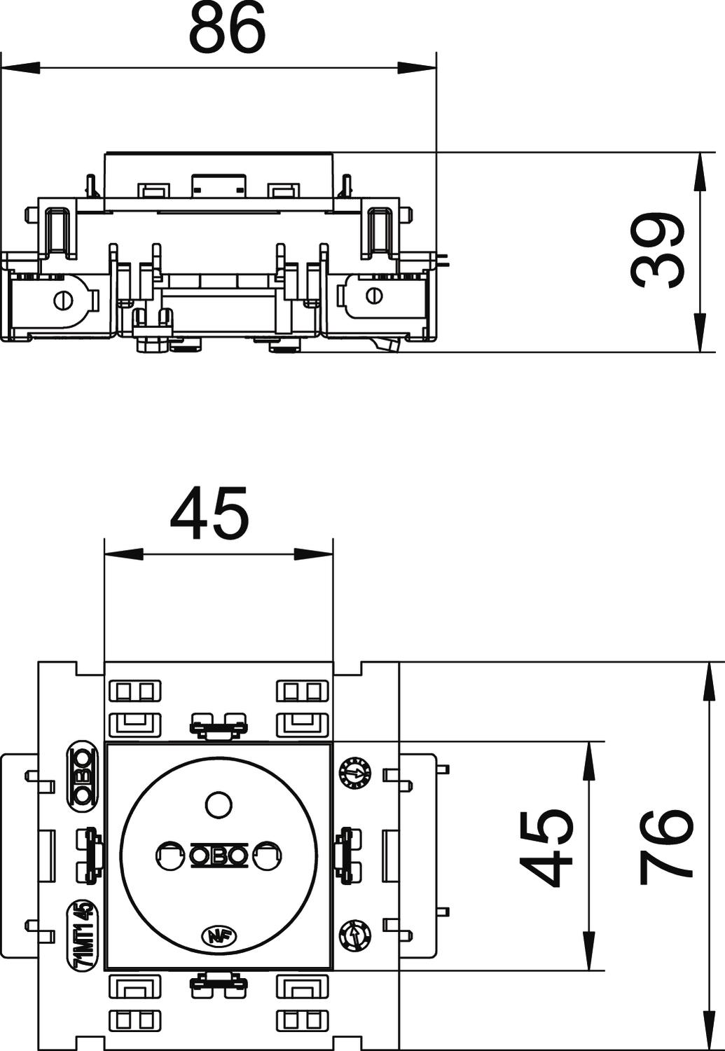 STD-F0C8 SWGR1 Gniazdo 0°, NF, pojedyncze, Conn Connect 80
