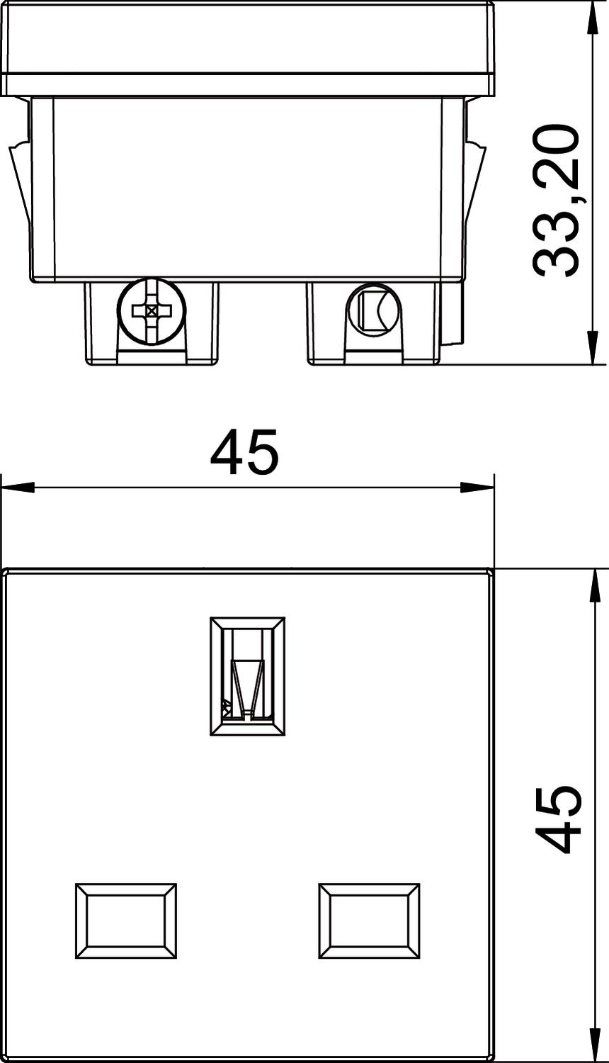 Gniazdo zasilające, pojedyncze 0° wg normy brytyjskiej, BS 1363, z zaciskami śrubowymi, 2-polowe, 13 A, 250 V~.