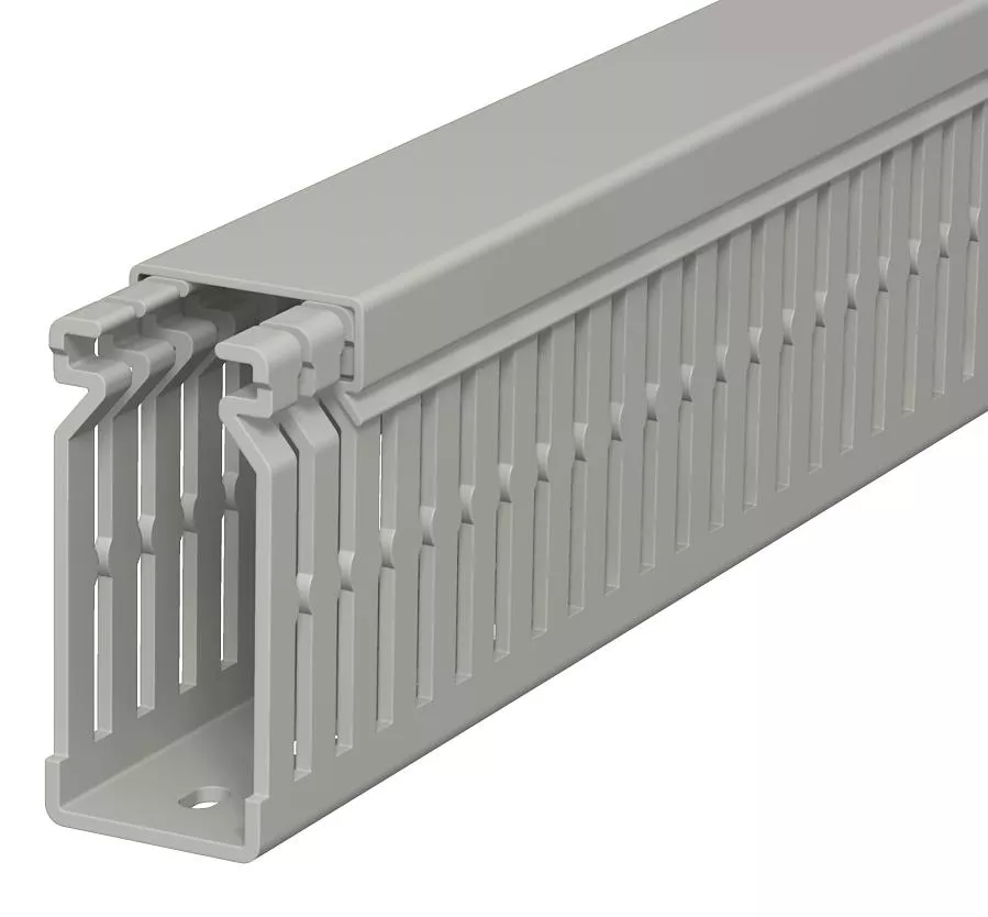Kanał grzebieniowy z pokrywą i perforacją dna, przetłoczenia grzebieni zapobiegają wypadnięciu przewodów. Wymiary znamionowe odpowiadają wewnętrznym wymiarom kanałów. Wykonanie specjalne na zapytanie.