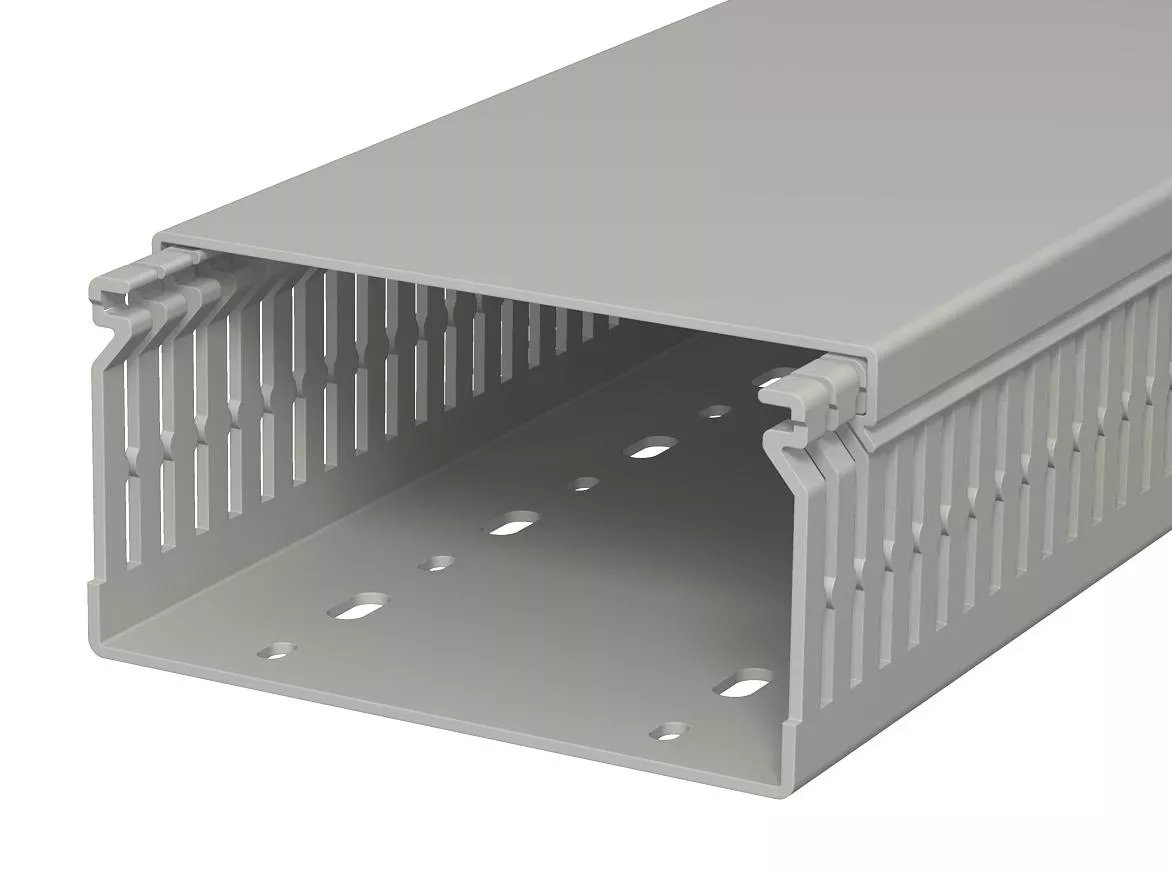 Kanał grzebieniowy z pokrywą i perforacją dna, przetłoczenia grzebieni zapobiegają wypadnięciu przewodów. Wymiary znamionowe odpowiadają wewnętrznym wymiarom kanałów. Wykonanie specjalne na zapytanie.