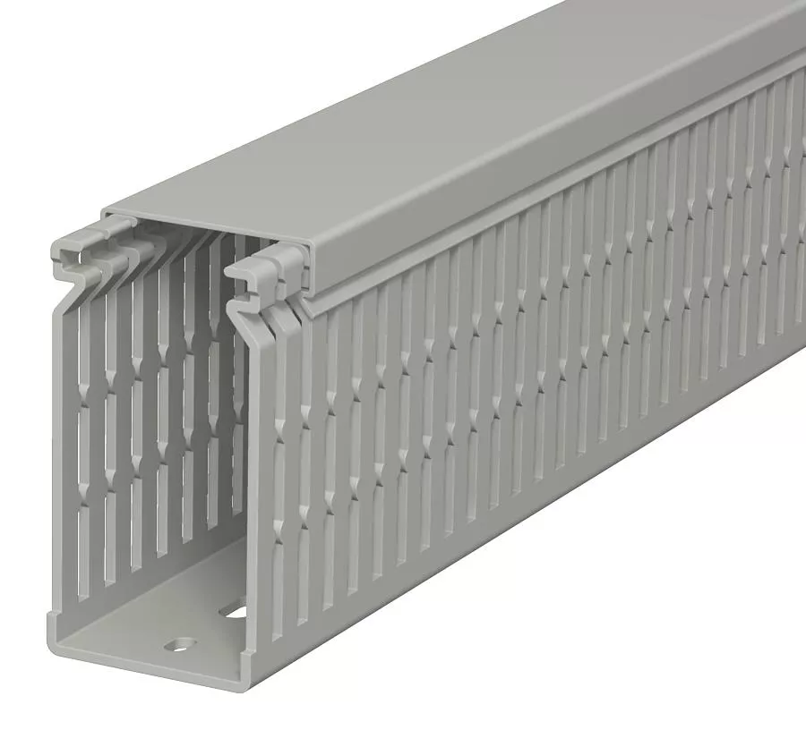 Kanał grzebieniowy z pokrywą i perforacją dna, przetłoczenia grzebieni zapobiegają wypadnięciu przewodów. Wymiary znamionowe odpowiadają wewnętrznym wymiarom kanałów. Wykonanie specjalne na zapytanie.