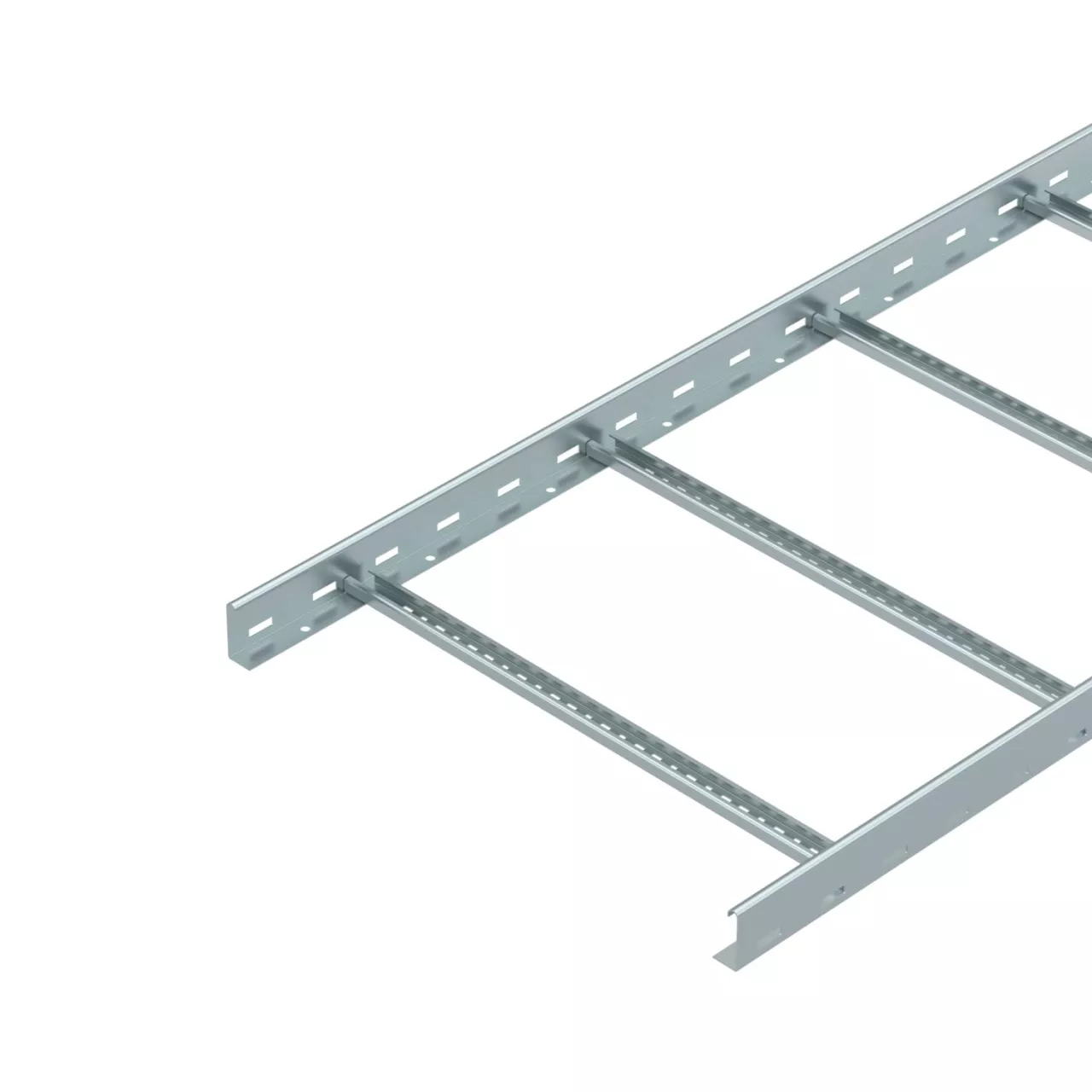 Drabina kablowa z perforowaną ścianą boczną o wysokości boku 60 mm połączoną nitami, otwartymi od góry, ze szczeblami profilu C (wersja VS).