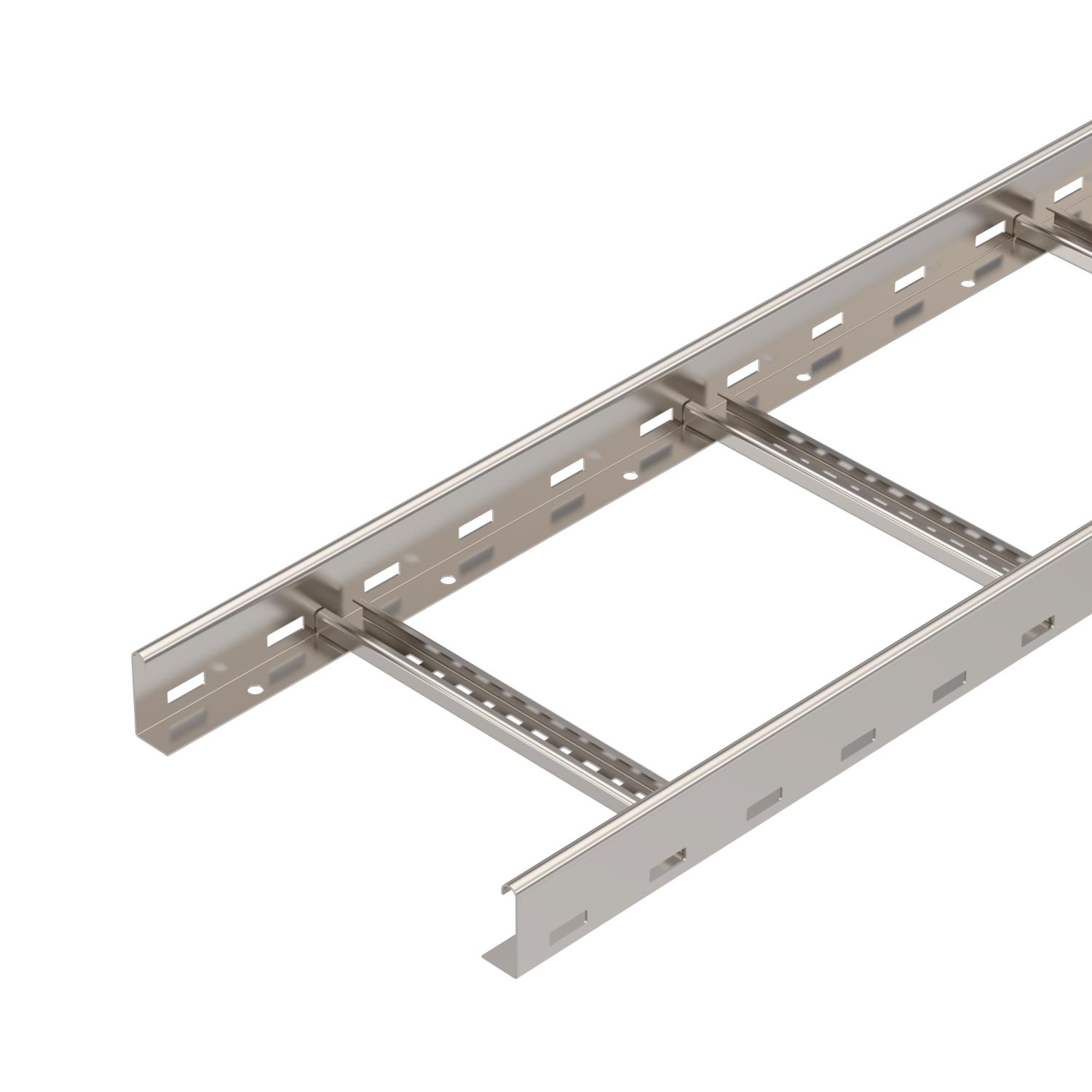 Drabina kablowa z perforowaną ścianą boczną o wysokości boku 60 mm połączoną nitami, otwartymi od góry, ze szczeblami profilu C (wersja VS).
