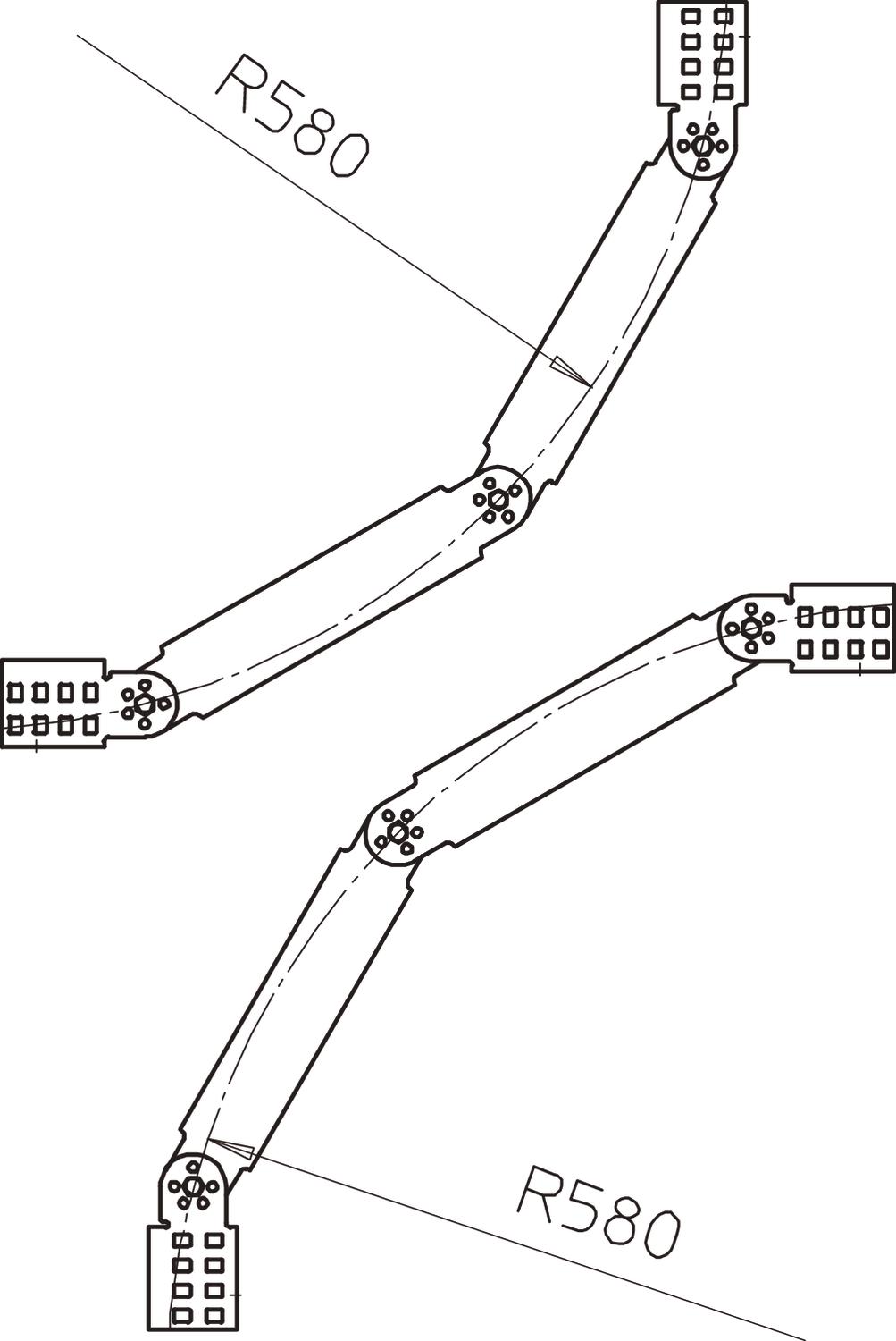Łuk przegubowy 90°, pionowy, do drabin kablowych ze szczeblami VS o wys. boku 60 mm.