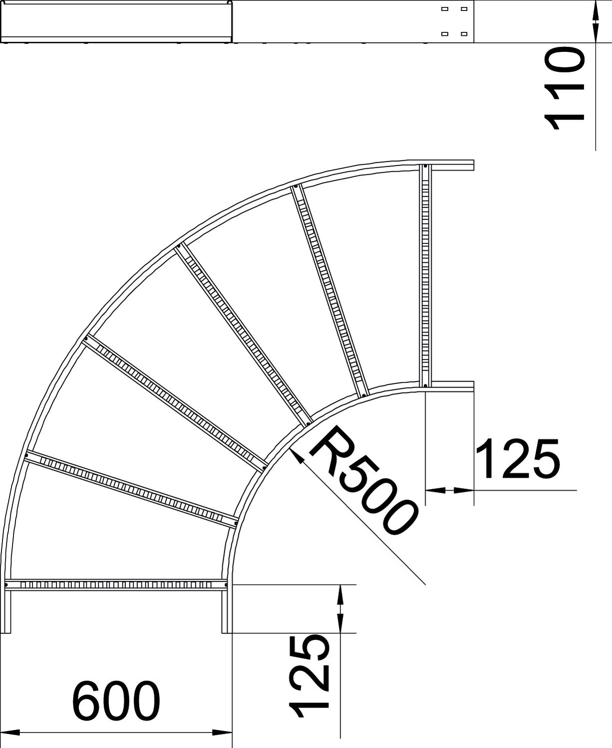 90° bend, horizontal, for all wide span cable ladders of 110 mm side height.