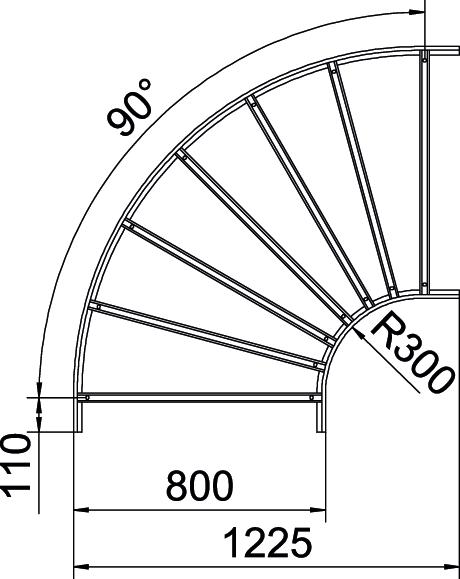 Łuk poziomy 90° z przyspawanymi szczeblami do wszystkich typów drabin kablowych o wysokości boku 110 mm.