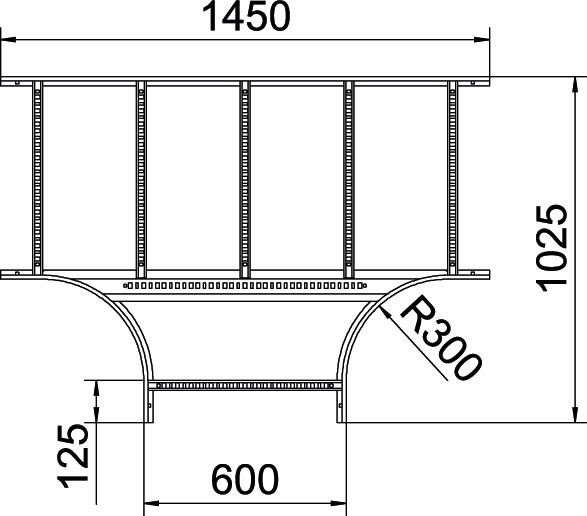 Trójnik, poziomy, z przyspawanymi szczeblami do wszystkich typów drabin kablowych o wysokości boku 60 mm.