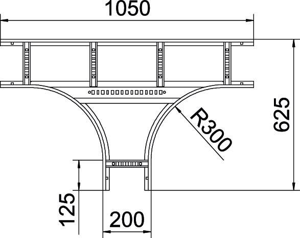 Trójnik, poziomy, z przyspawanymi szczeblami do wszystkich typów drabin kablowych o wysokości boku 60 mm.