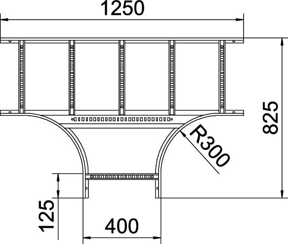 Trójnik, poziomy, z przyspawanymi szczeblami do wszystkich typów drabin kablowych o wysokości boku 60 mm.
