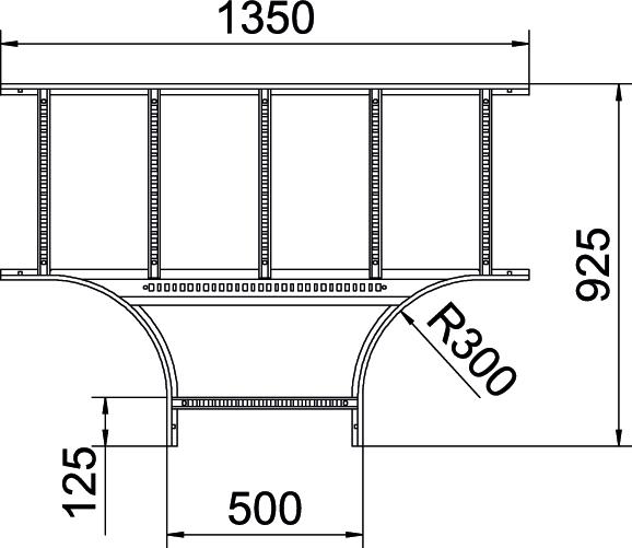 Trójnik, poziomy, z przyspawanymi szczeblami do wszystkich typów drabin kablowych o wysokości boku 60 mm.