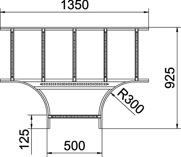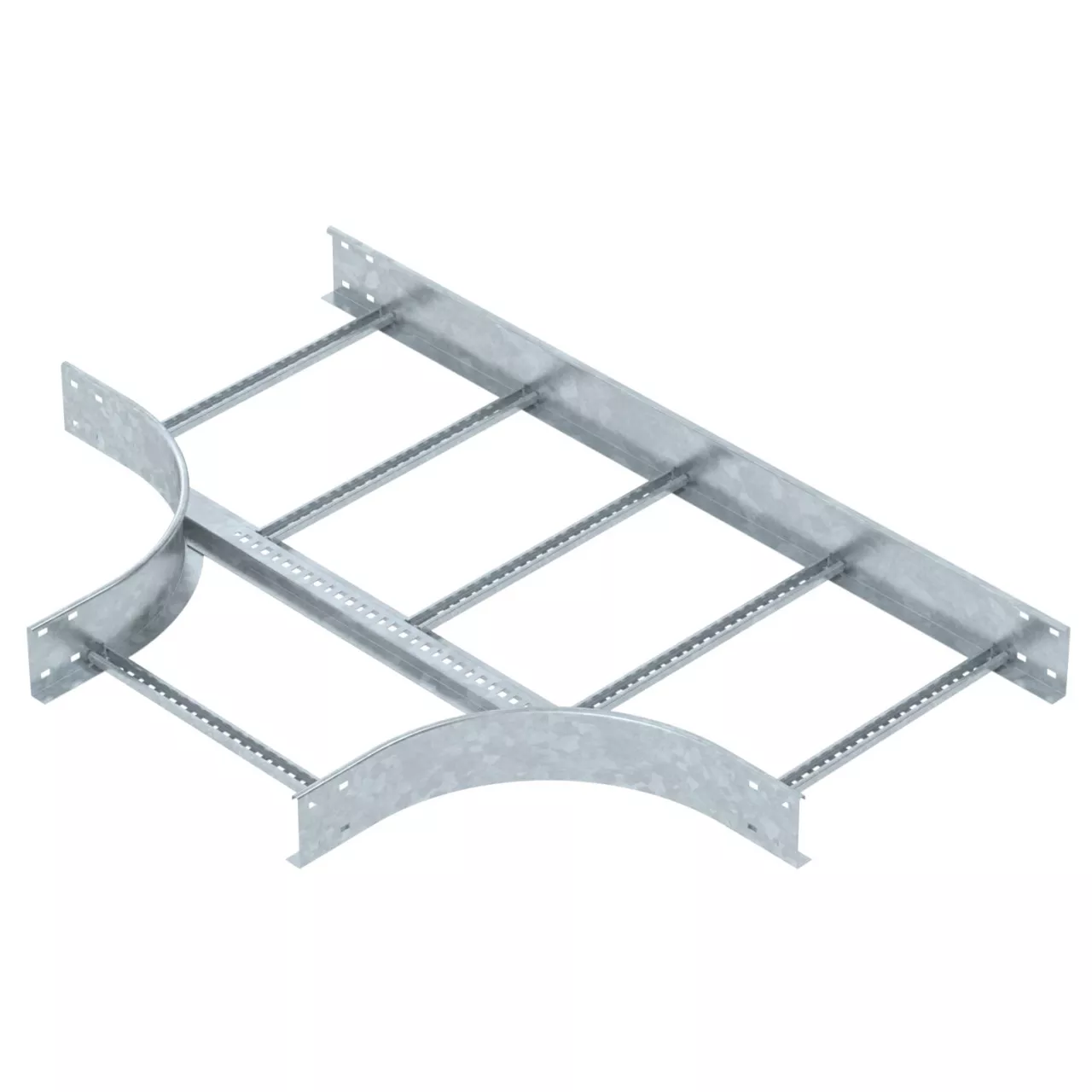 Trójnik, poziomy, z przyspawanymi szczeblami do wszystkich typów drabin kablowych o wysokości boku 110 mm.