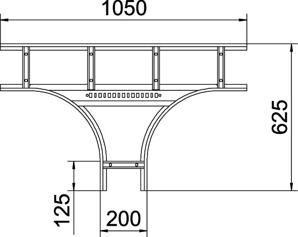 Trójnik, poziomy, z przyspawanymi szczeblami do wszystkich typów drabin kablowych o wysokości boku 110 mm.