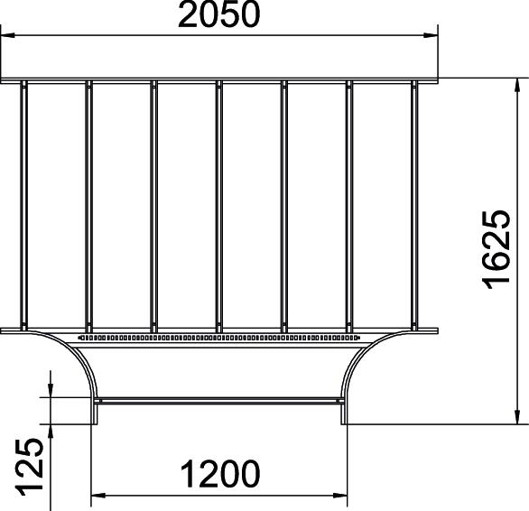 Trójnik, poziomy, z przyspawanymi szczeblami do wszystkich typów drabin kablowych o wysokości boku 110 mm.