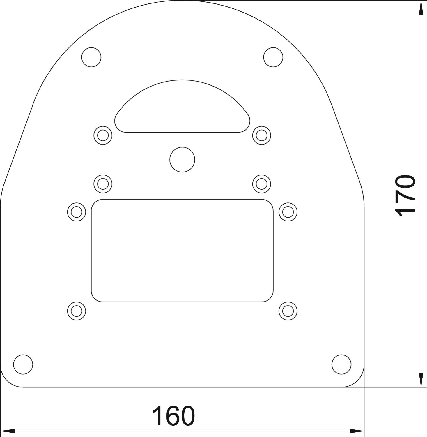 Płyta podłogowa do montażu kolumny zasilającej ISS110100 do podłogi. Płyta podłogowa z widoczną krawędzią i 4 otworami mocującymi Ø 8,5 mm.