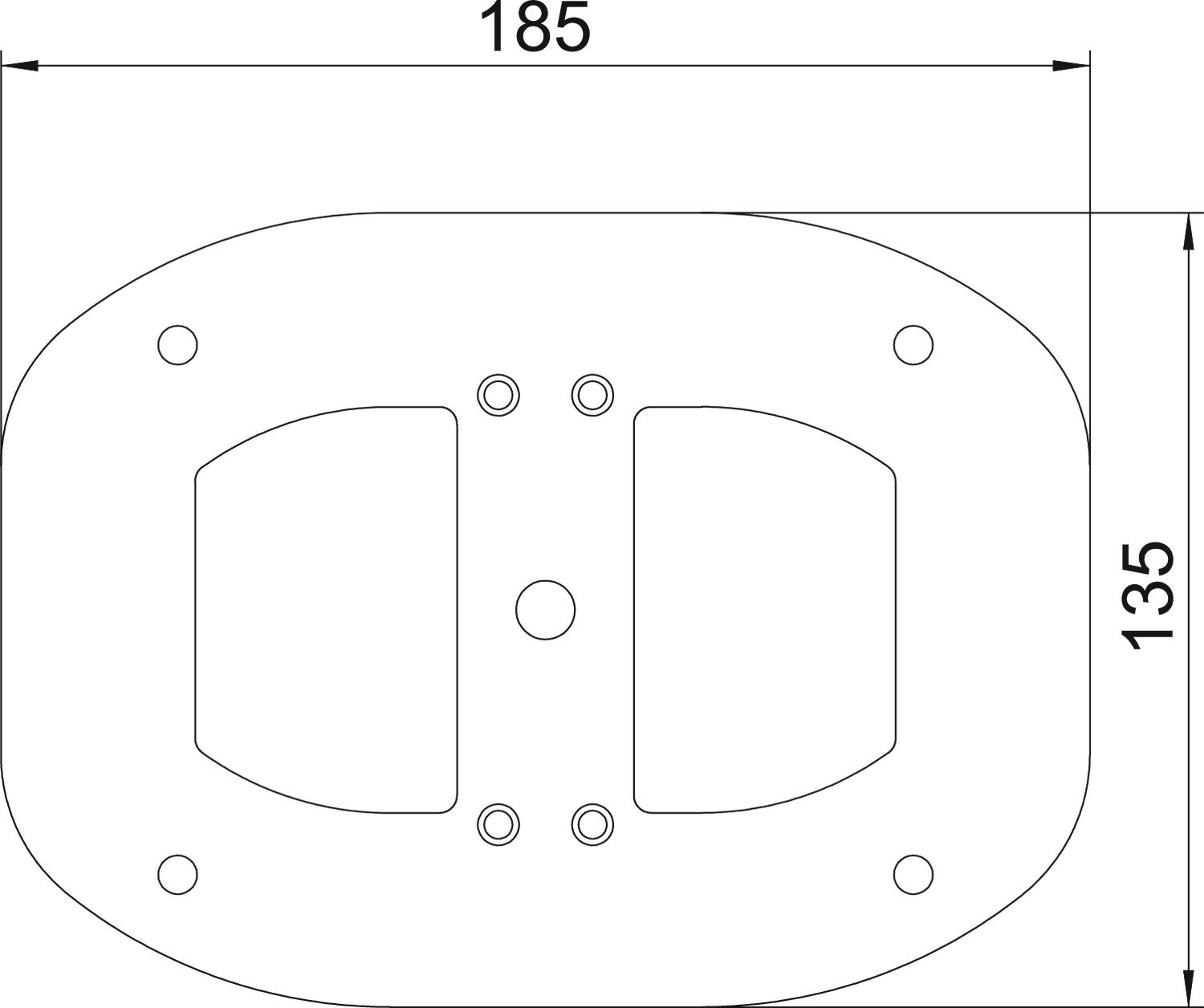 Płyta podlogowa z widoczną krawędzią 30 mm i 4 otworami montażowymi Ø 8,5 mm.