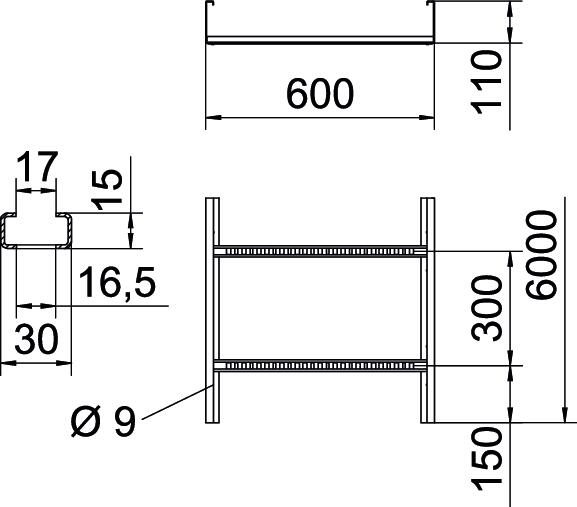 Szerokorozpiętościowa drabina kablowa, z perforacją boczną, o wysokości boku 110 mm.
