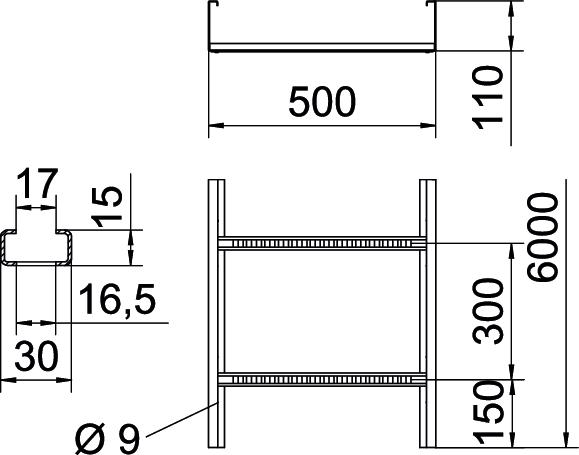 Szerokorozpiętościowa drabina kablowa, z perforacją boczną, o wysokości boku 110 mm.