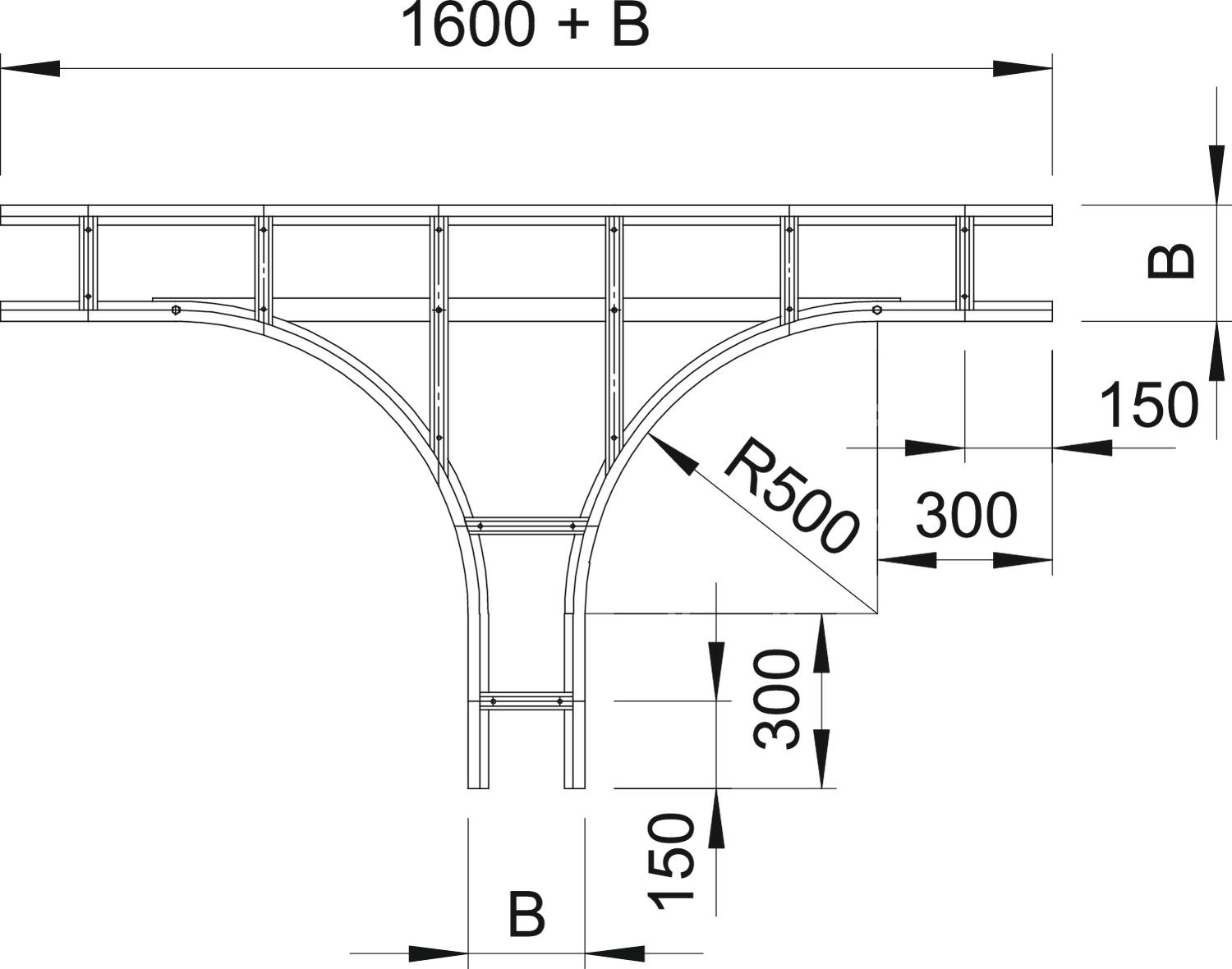 Trójnik, poziomy, do wszystkich drabin kablowych szerokorozpiętościowych o wys. boku 110 mm.