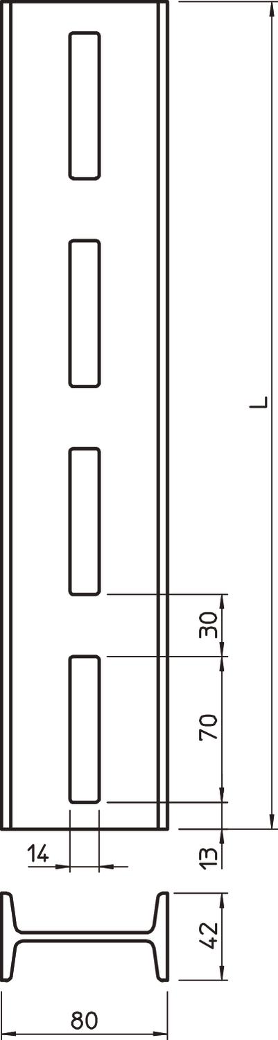 Wieszak IS typowe długości. Wymiary 80 x 42 mm.