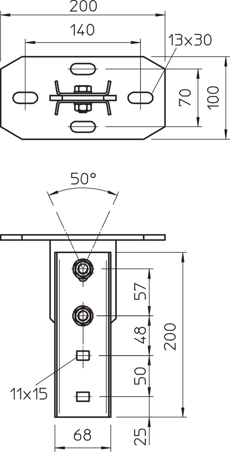 Regulowana w kierunku wzdłużnym głowica do montażu na wieszaku IS 8.