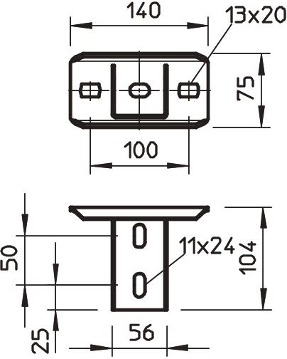 Płyta głowicy do montażu na wieszakach US 5. W połączeniu z wieszakiem US 5 można na miejscu wykonać wieszaki o wszystkich długościach. Odpowiednia również do zamocowania drabin pionowych typ SLM 50.
