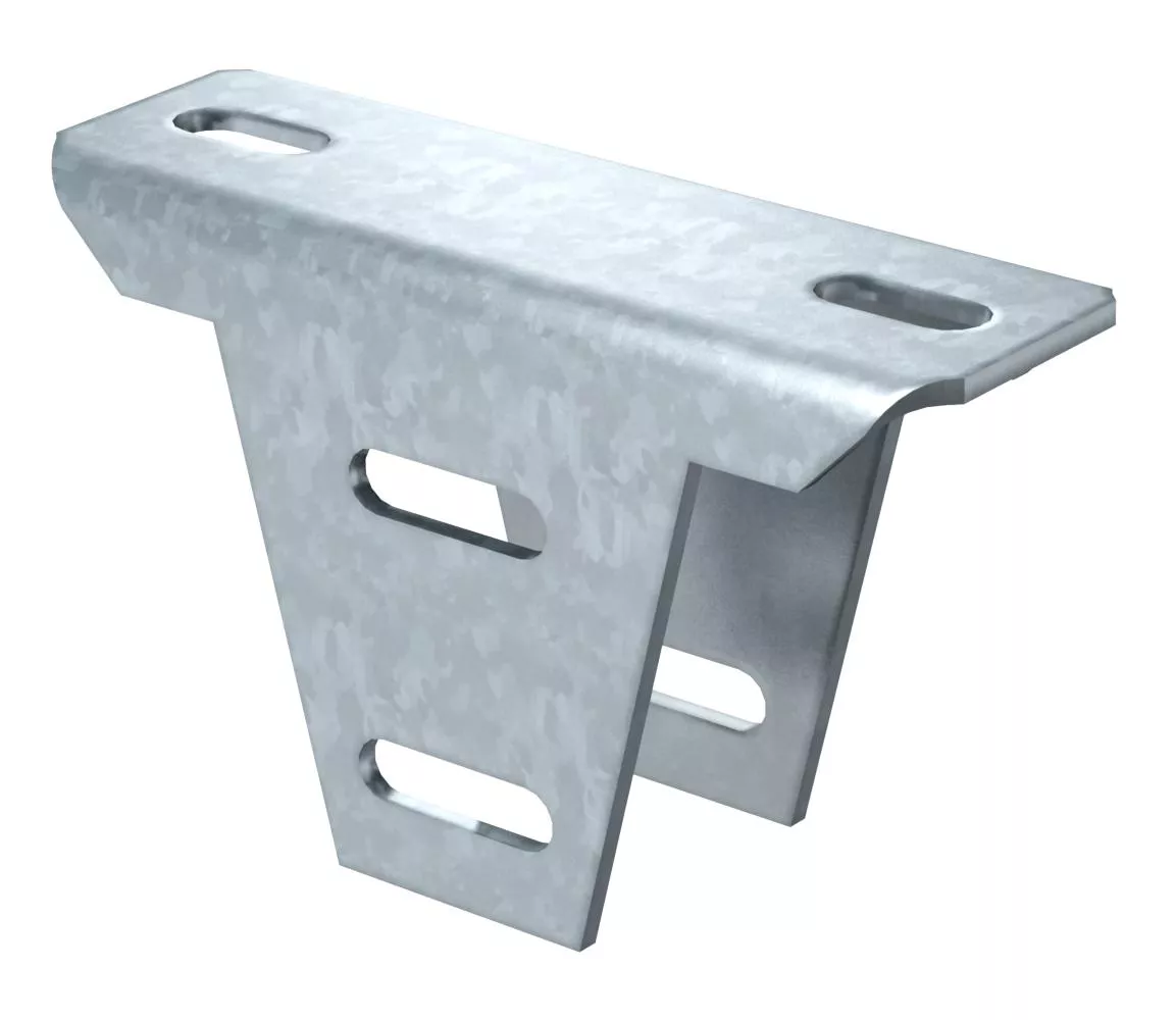 Regulowana płyta głowicy do montażu na wieszakach US 5. W połączeniu z wieszakiem US 5 można na miejscu wykonać wieszaki o wszystkich długościach. Z użyciem regulowanej płyty głowicy można skompensować skośne podwieszenia do 30°.