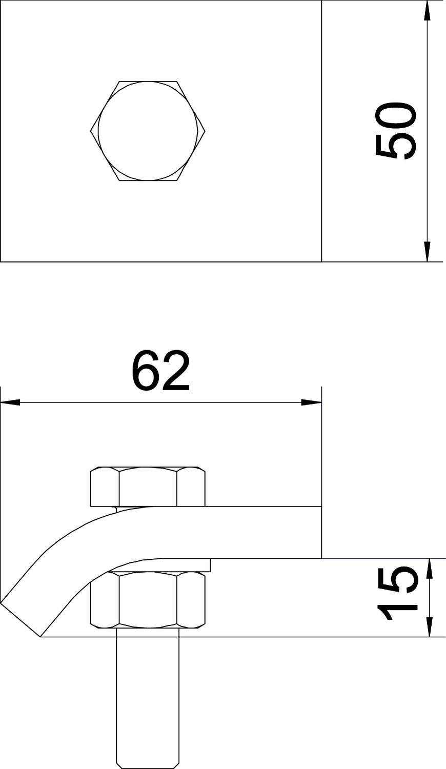 Kątownik zaciskowy ze śrubą z łbem sześciokątnym typ KWS do bezpośredniego zamocowania na konstrukcjach stalowych.