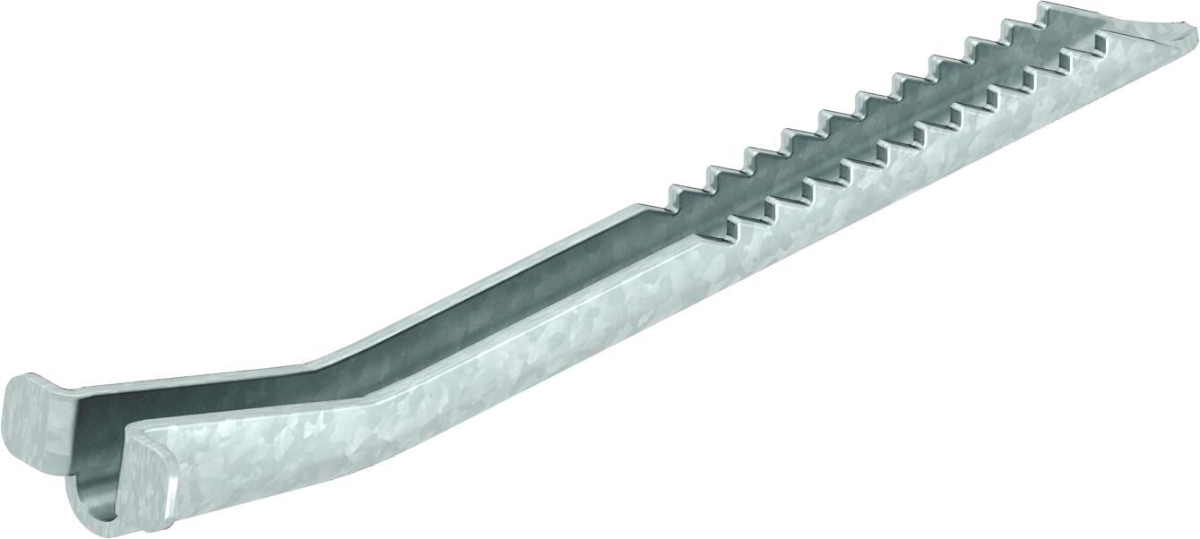 Rygiel do mocowania i zabezpieczenia uchwytu trapezowego na stropach z blachy trapezowej.