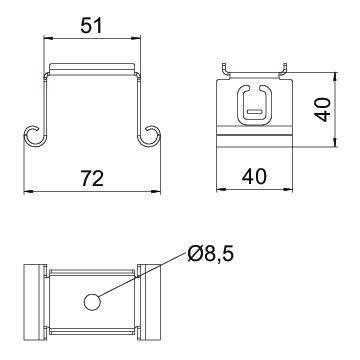 Uchwyt środkowy do podwieszania koryt kablowych, mocowany w boku koryta.