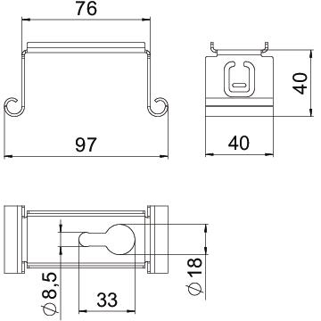 Uchwyt środkowy do podwieszania koryt kablowych, mocowany w boku koryta.