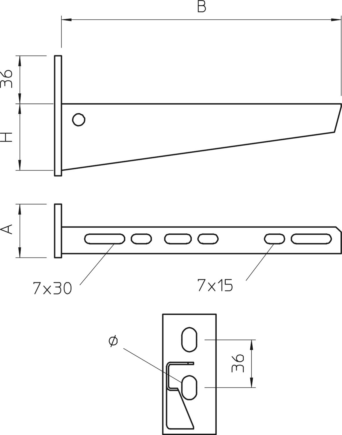 AW 15 21 FT 2L Wysięgnik ścienny z 2 otworami mocującymi