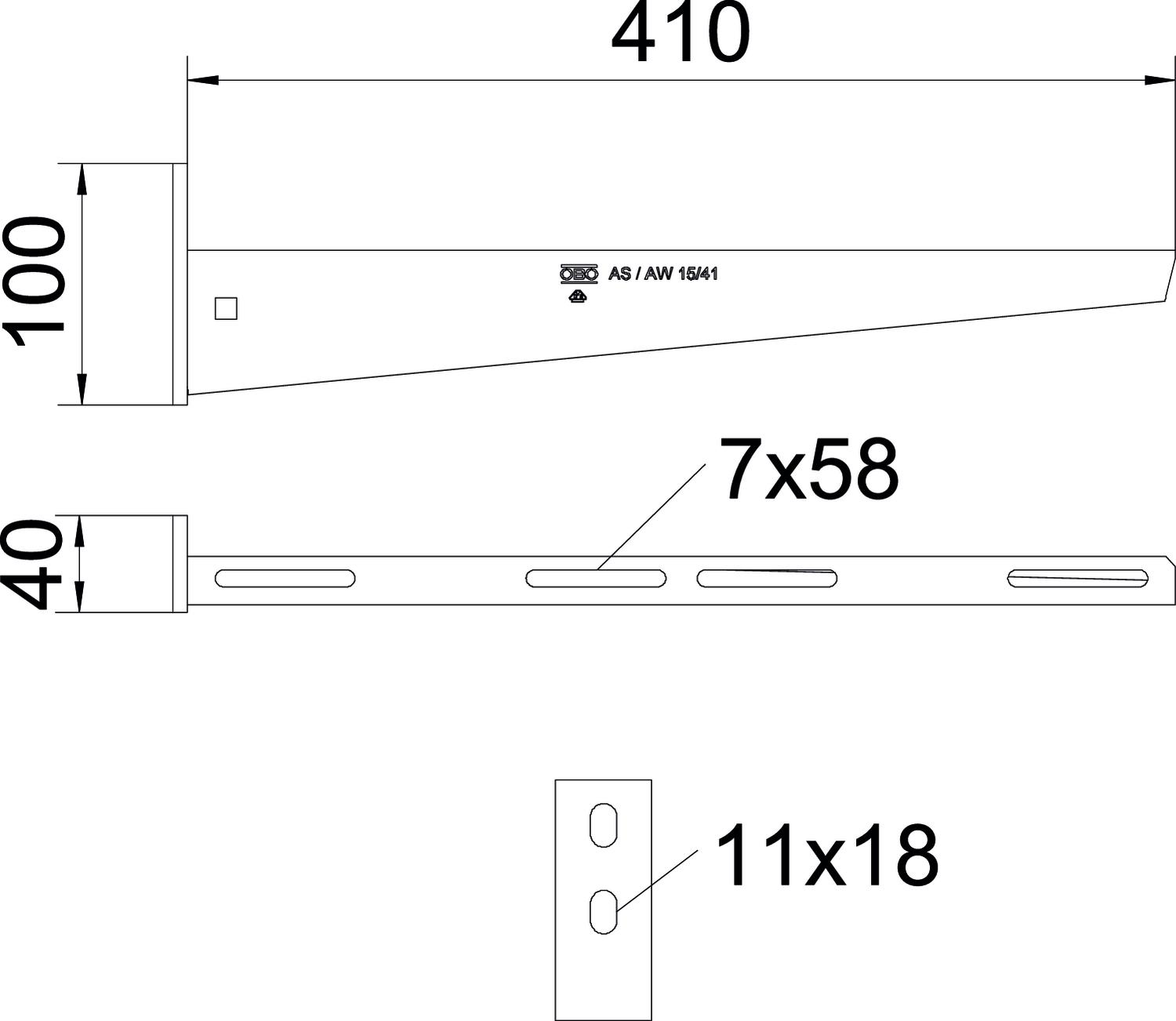 AW 15 41 FT 2L Wysięgnik ścienny z 2 otworami mocującymi