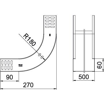 Kolanko pionowe 90° w wersji wznoszącej do wszystkich koryt kablowych o wysokości boku 60 mm.