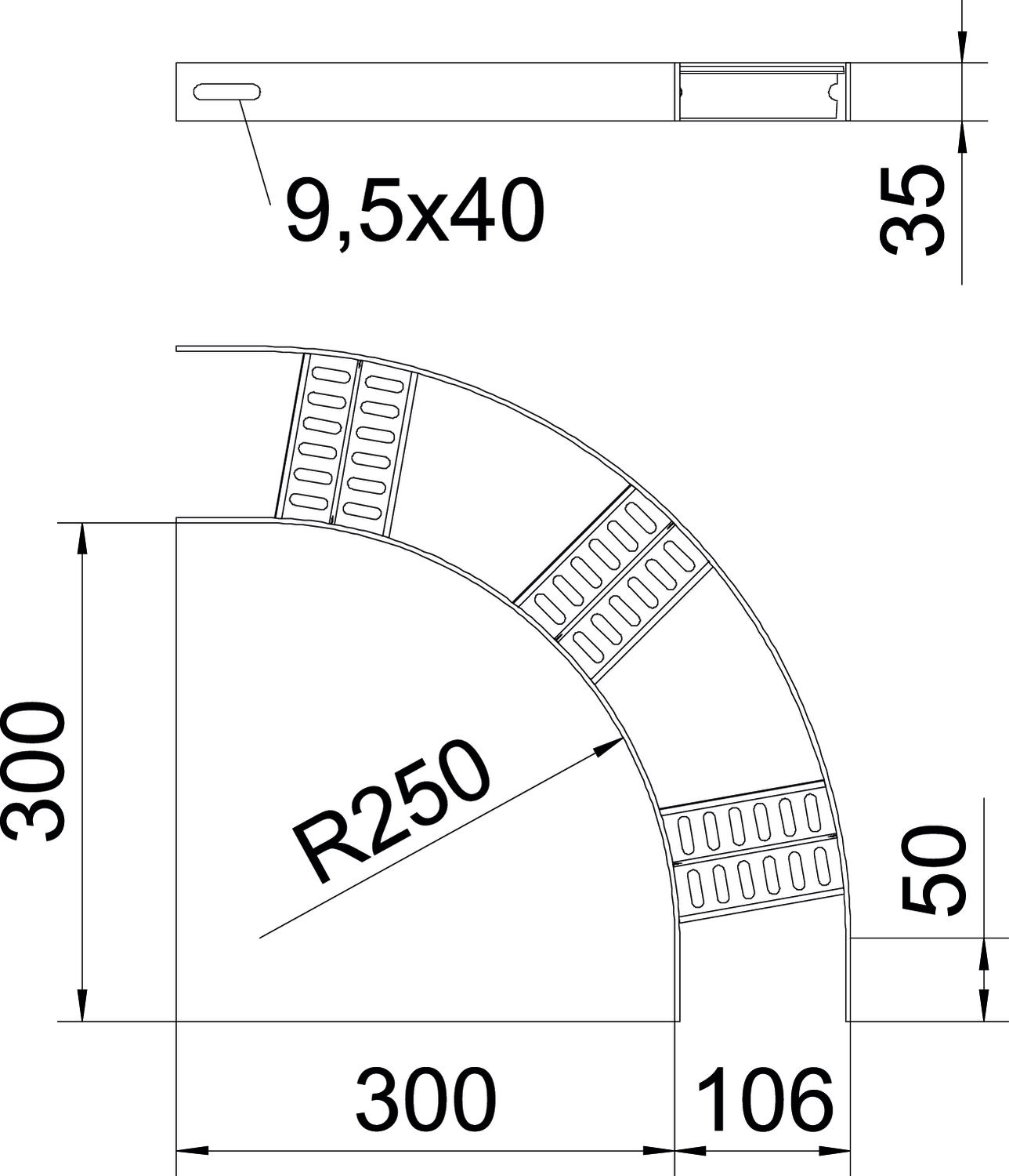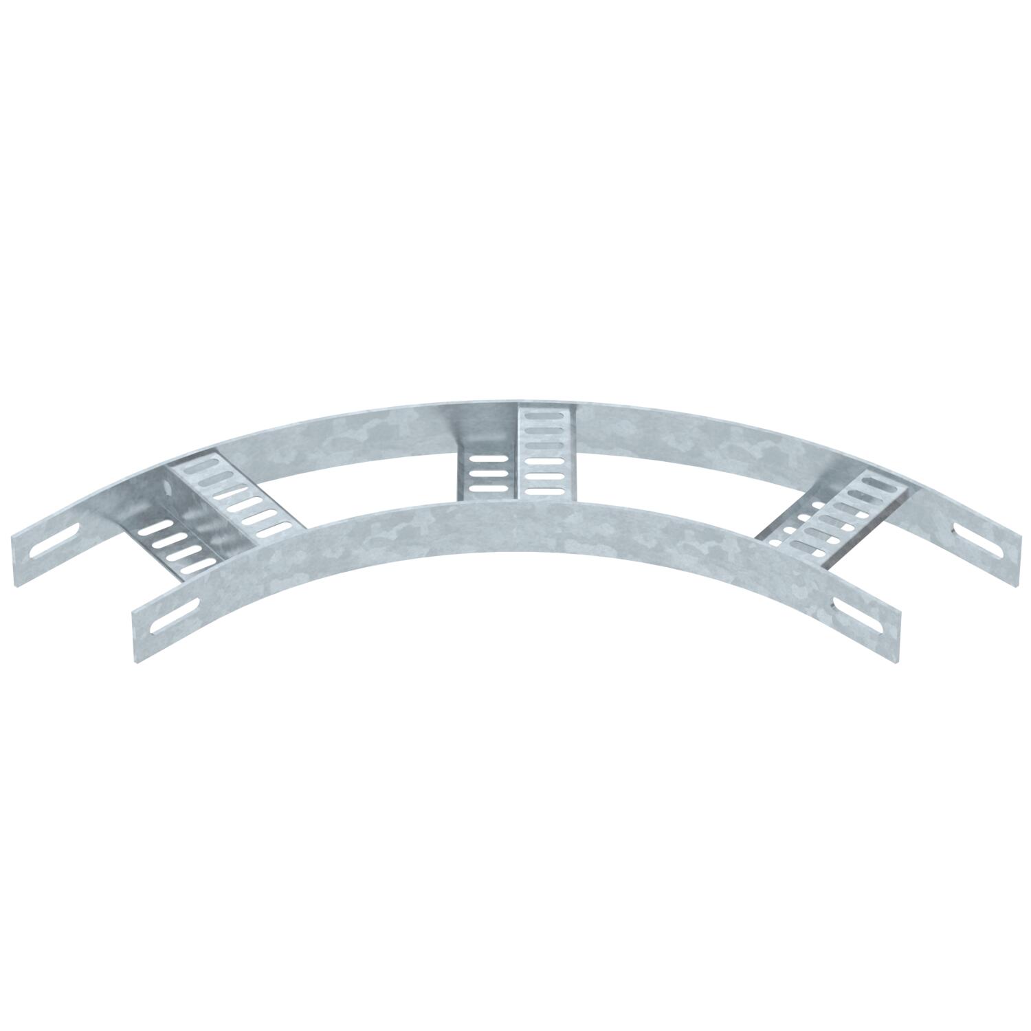 Łuk 90° do drabinek kablowych morskich typu SLZ L o wys. boku 35 mm, ze spawanymi, perforowanymi Z-szczeblami.