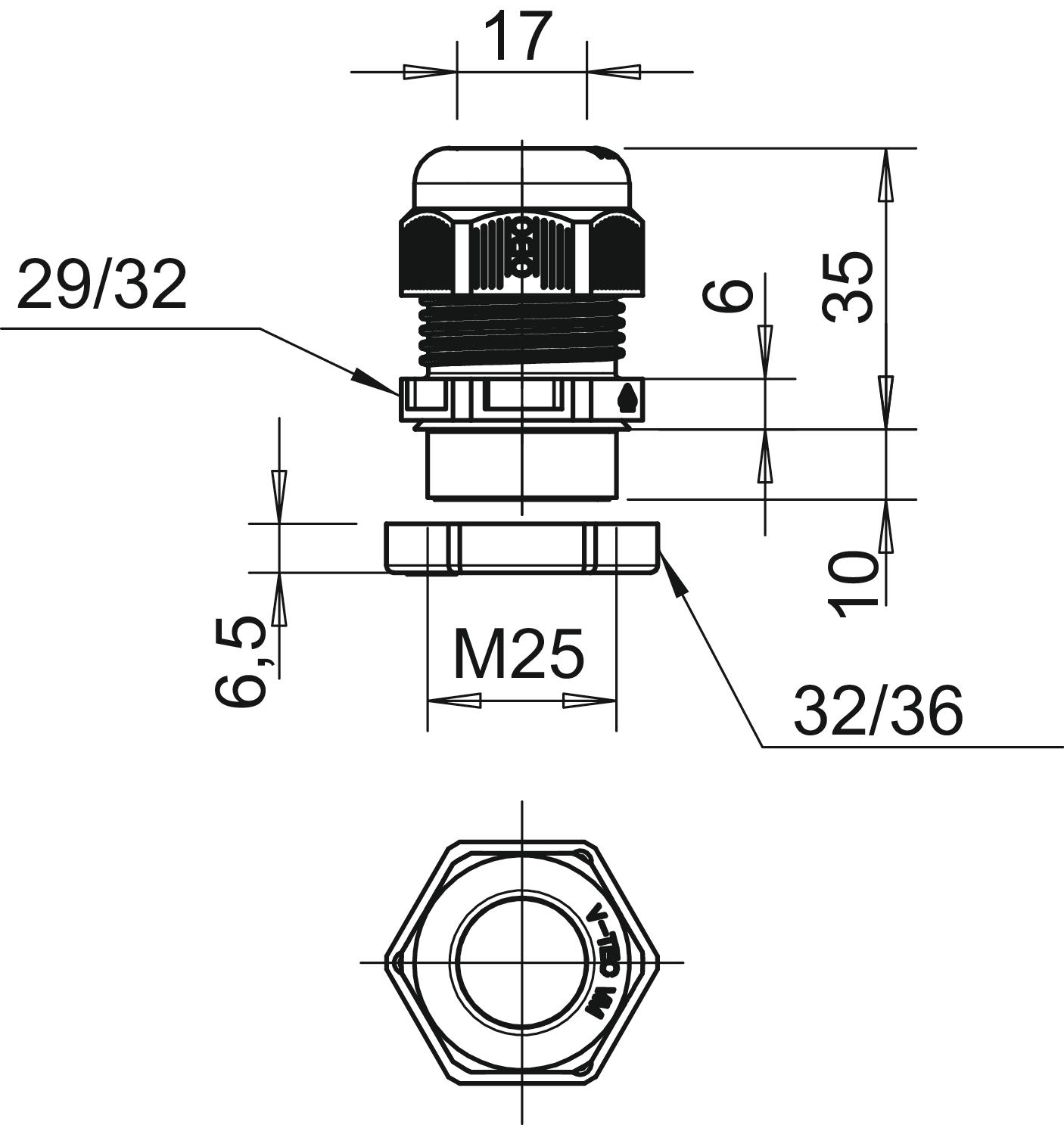 V-TEC VM25+ OR Dławik kablowy z przeciwnakrętką