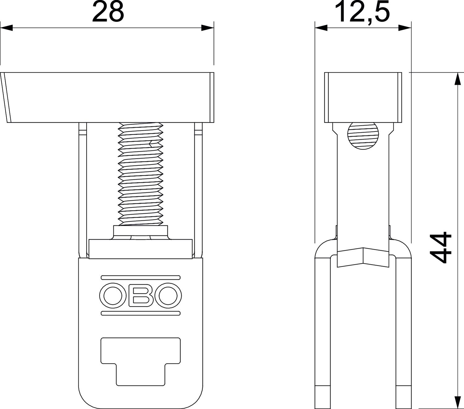 Zacisk przewodu ochronnego do puszek odgałęźnych T-serii FireBox z zieloną i żółtą etykietą.