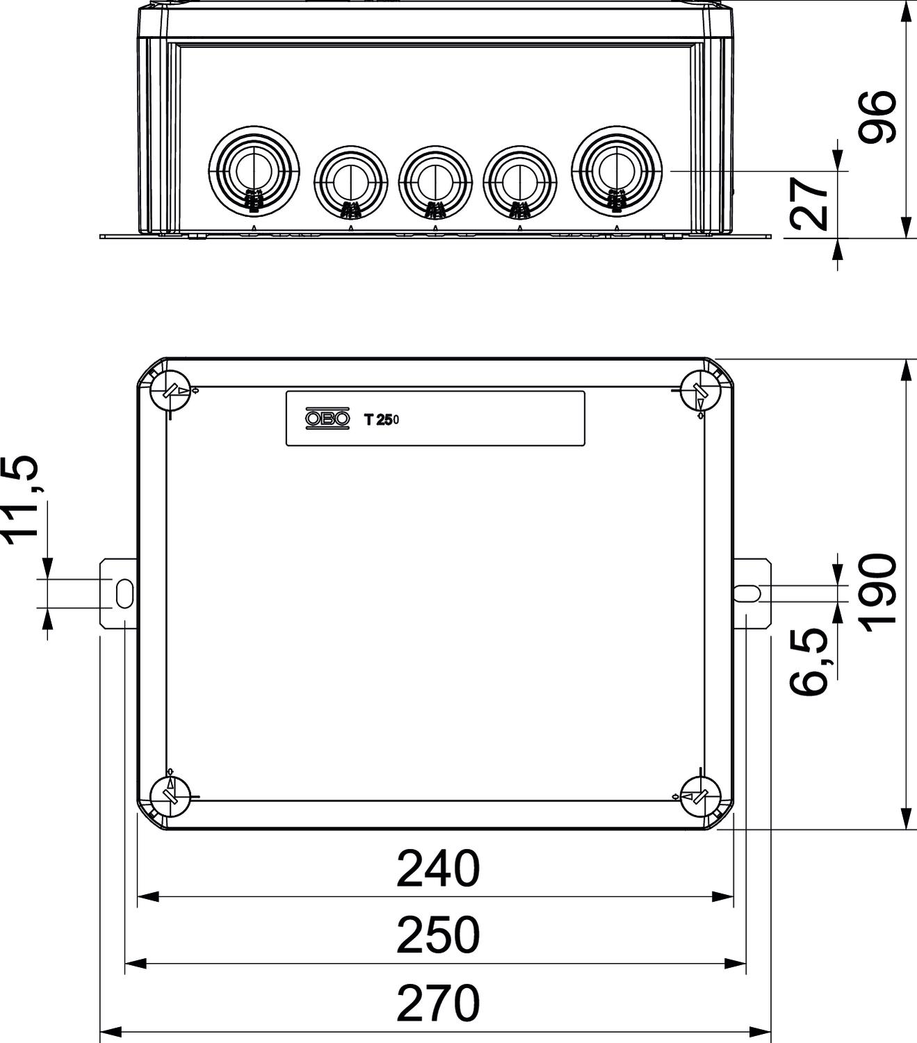 Puszka przyłączeniowa z uchwytem bezpiecznika i dławikami elastycznymi. Wystarczająca ilość miejsca na okablowanie dzięki ukośnie ułożonej jednostce przyłączeniowej z całkowicie zmontowanymi, odpornymi na wysoką temperaturę zaciskami ceramicznymi. Zacisk przewodu ochronnego oznaczony kolorem zielonym i żółtym. Mocowanie do łatwo dostępnych uchwytów zewnętrznych. Dopuszczony do systemów kablowych z podtrzymaniem funkcji elektrycznych zgodnie z DIN 4102 część 12 w klasach E30, E60 i E90. Zaciski ceramiczne zgodne z normą DIN EN 60998-2-1:2004.