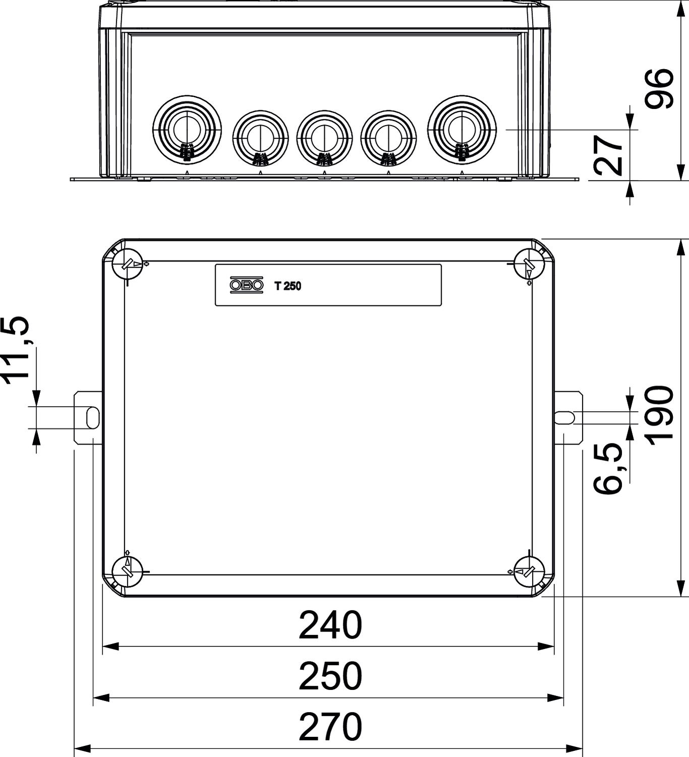 Puszka przyłączeniowa z dwoma uchwytami bezpieczników i dławikami elastycznymi. Wystarczająca ilość miejsca na okablowanie dzięki ukośnie ułożonej jednostce przyłączeniowej z całkowicie zmontowanymi, odpornymi na wysoką temperaturę zaciskami ceramicznymi. Zacisk przewodu ochronnego oznaczony kolorem zielonym i żółtym. Mocowanie do łatwo dostępnych uchwytów zewnętrznych. Dopuszczony do systemów kablowych z podtrzymaniem funkcji elektrycznych zgodnie z DIN 4102 część 12 w klasach E30, E60 i E90. Zaciski ceramiczne zgodne z normą DIN EN 60998-2-1:2004.