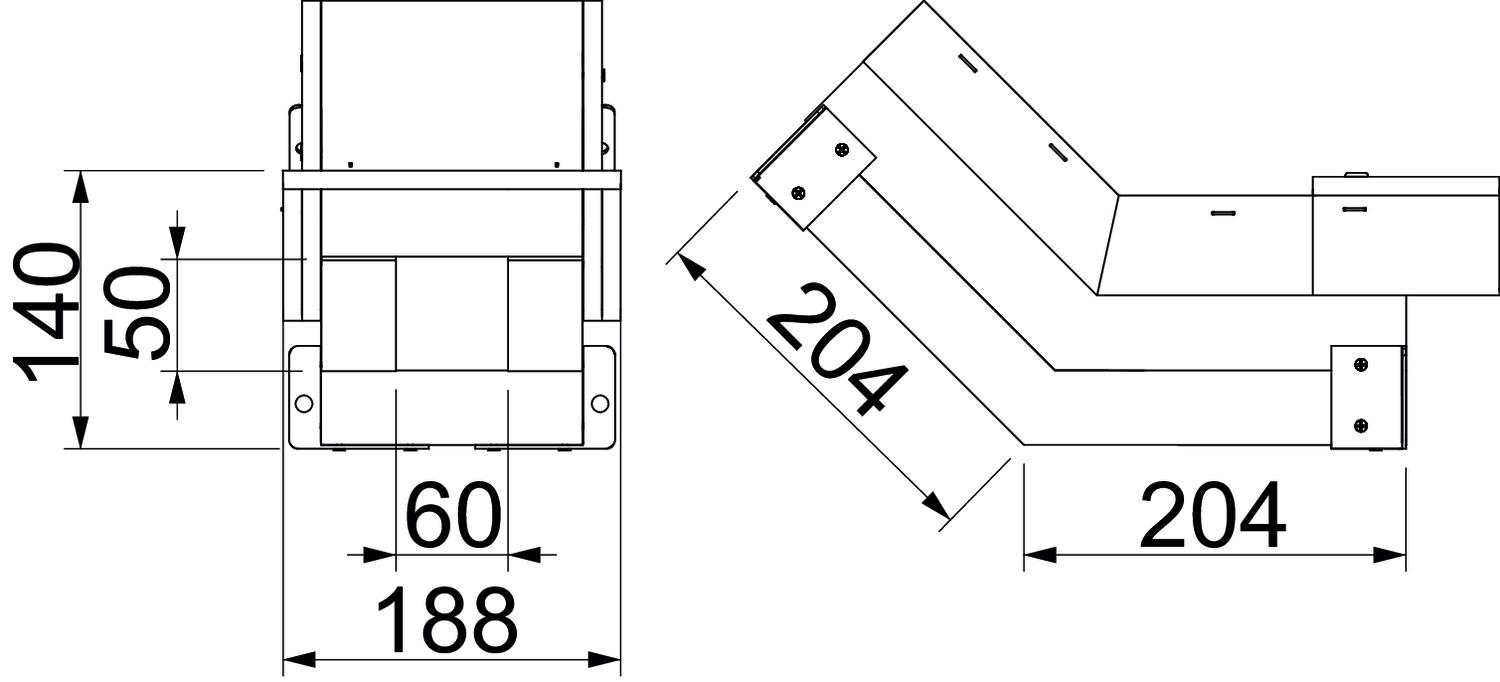 Rising vertical bend for PYROLINE® Con S fire protection duct, type BSKH09-K0506, consisting of fibreglass lightweight concrete which is resistant to water and frost for the creation of vertical changes of direction (45°) of the duct. Mounted connectors ensure quick mounting in situ, whilst loosely placed covers ensure quick inspection and reassignment.