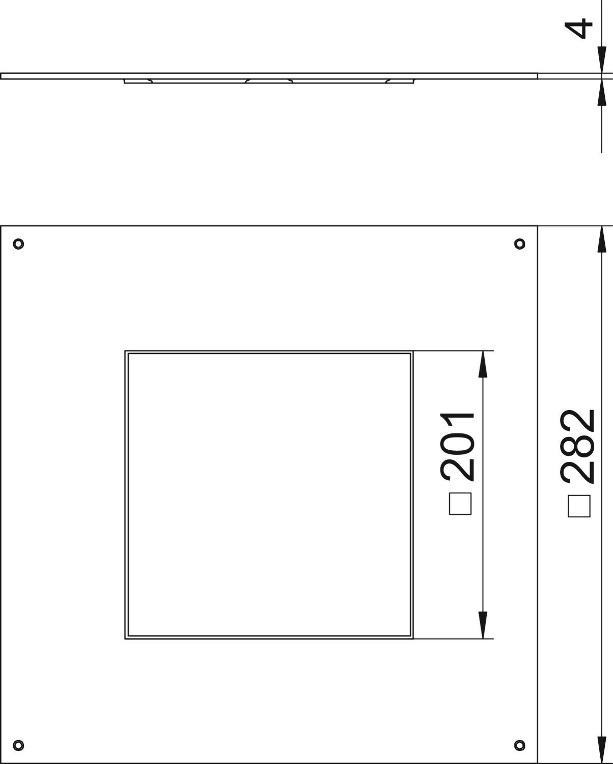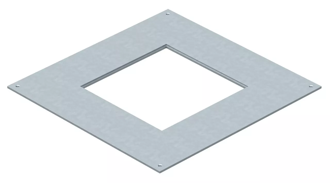 Pokrywa montażowa do montażu kasety wielkości znamionowej 4 na puszkach podpodłogowych typu UZD250-3, otwór montażowy pogłębiony o 3 mm do późniejszego zamknięcia za pomocą pokrywy zaślepiającej.