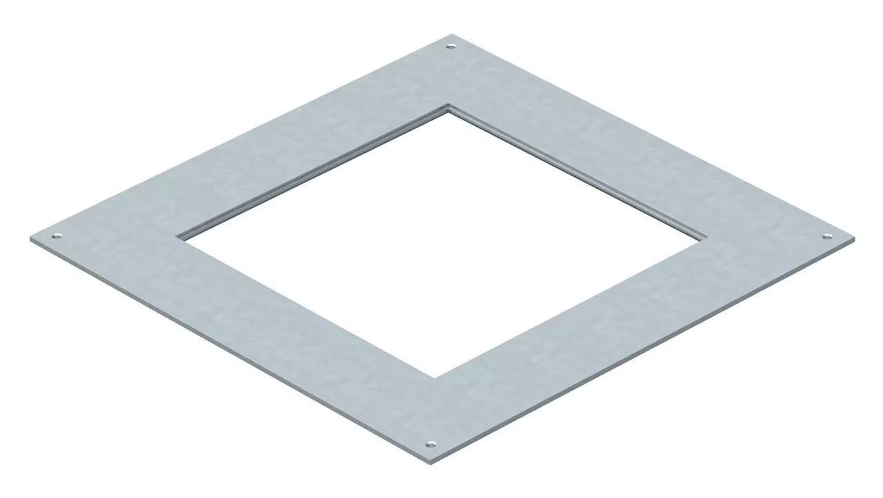 Pokrywa montażowa do montażu kasety wielkości znamionowej 9 na puszkach podpodłogowych typu UZD250-3, otwór montażowy pogłębiony o 3 mm do późniejszego zamknięcia za pomocą pokrywy zaślepiającej.