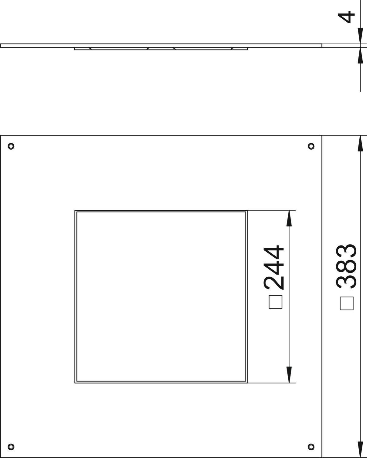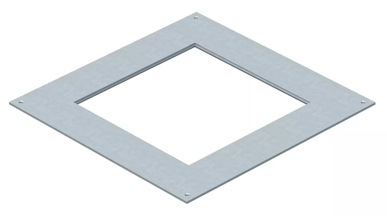 Pokrywa montażowa do montażu kasety wielkości znamionowej 9 na puszkach podpodłogowych typu UZD350-3, otwór montażowy pogłębiony o 3 mm do późniejszego zamknięcia za pomocą pokrywy zaślepiającej.