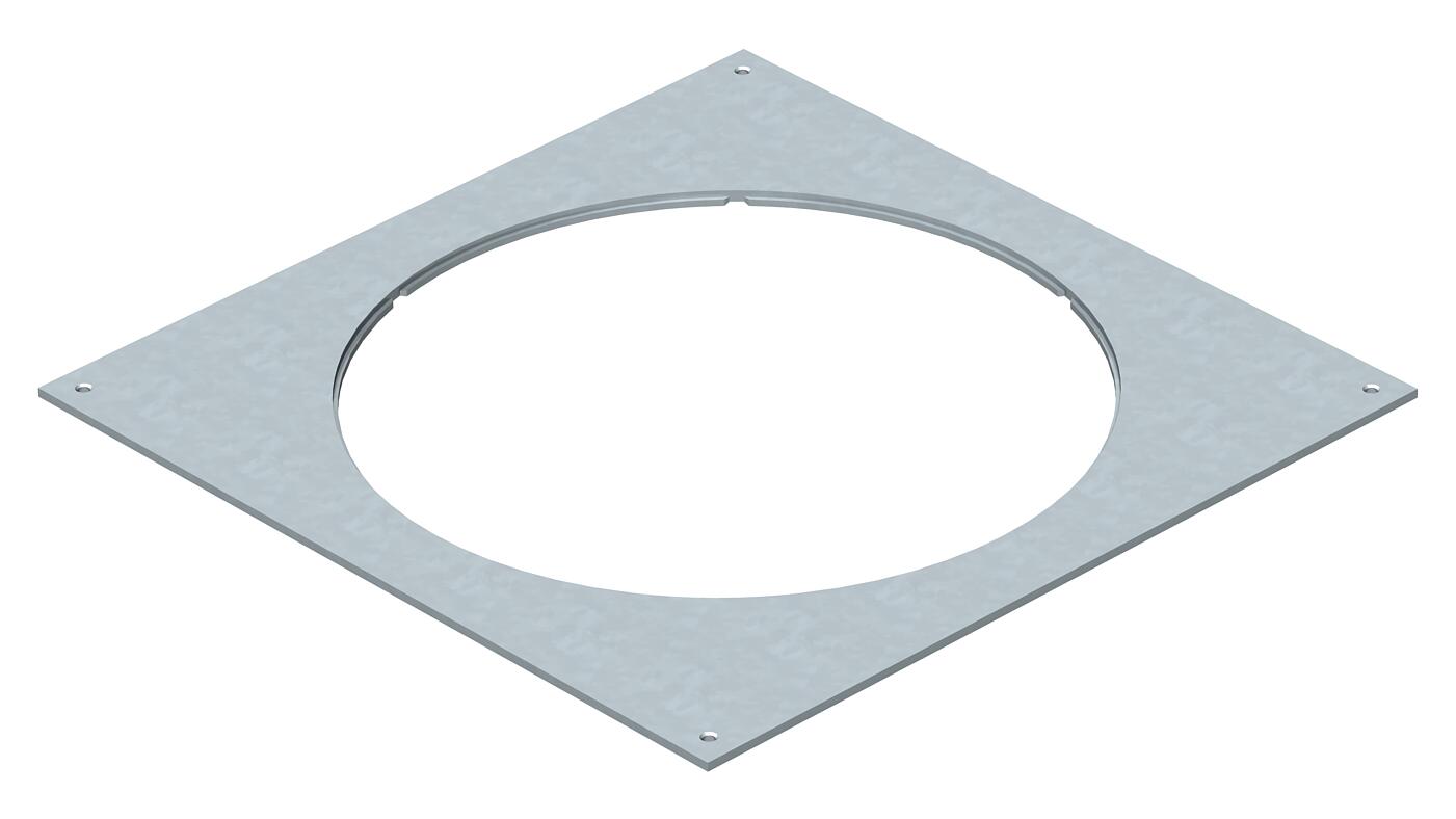 Pokrywa montażowa do montażu kasety wielkości znamionowej R9 na puszkach podpodłogowych typu UZD350-3. Otwór montażowy pogłębiony o 3 mm do późniejszego zamknięcia za pomocą pokrywy zaślepiającej.