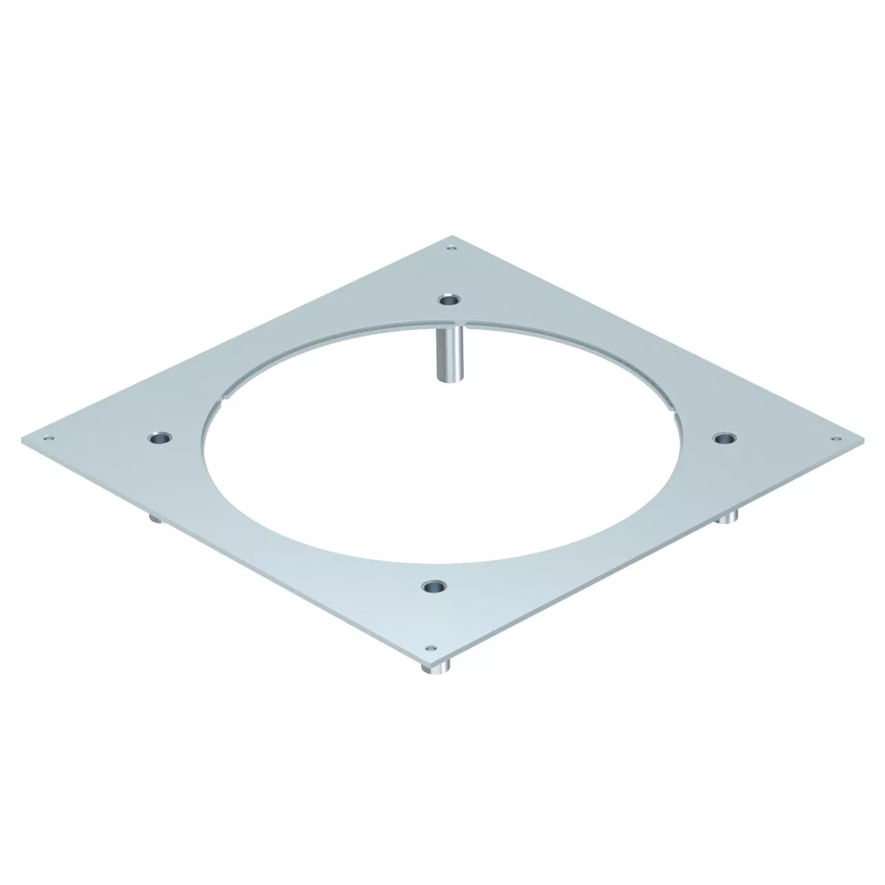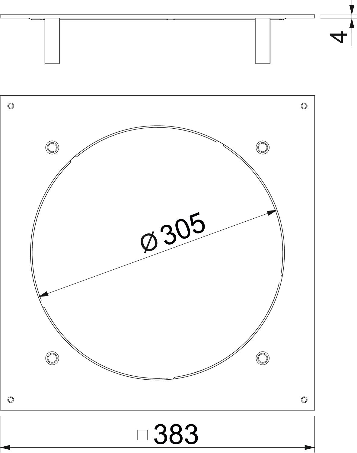Wzmocniona pokrywa montażowa do puszki podpodłogowej UZD350-3 jest przystosowana do montażu okrągłej kasety do wysokich obciążeń wielkości znamionowej R9. Otwór montażowy jest pogłębiony o 3 mm, można go później zamknąć pokrywą zaślepiającą.