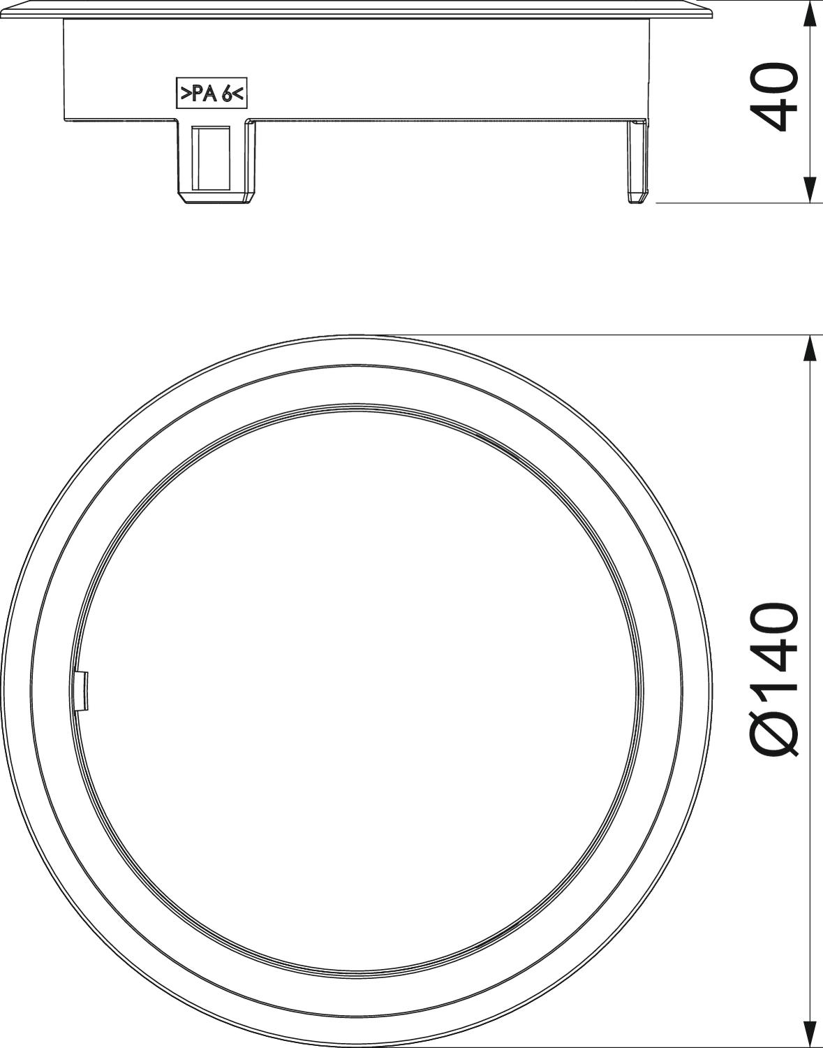 Service outlet with blanking cover and cord outlet for GES R2 floor socket for direct installation in the MT R2 installation socket.