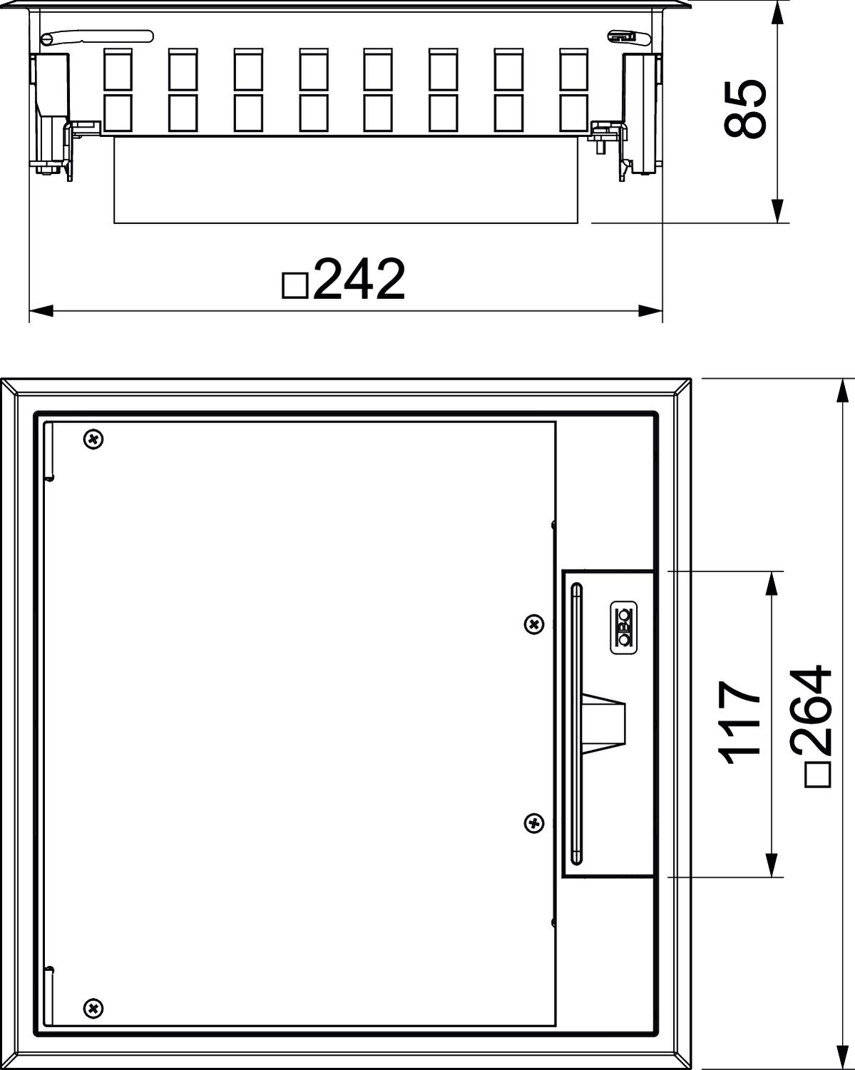 Wgłębienie w pokrywie na wykładzinę podłogową 5 mm, w razie potrzeby regulowane do 10 mm.