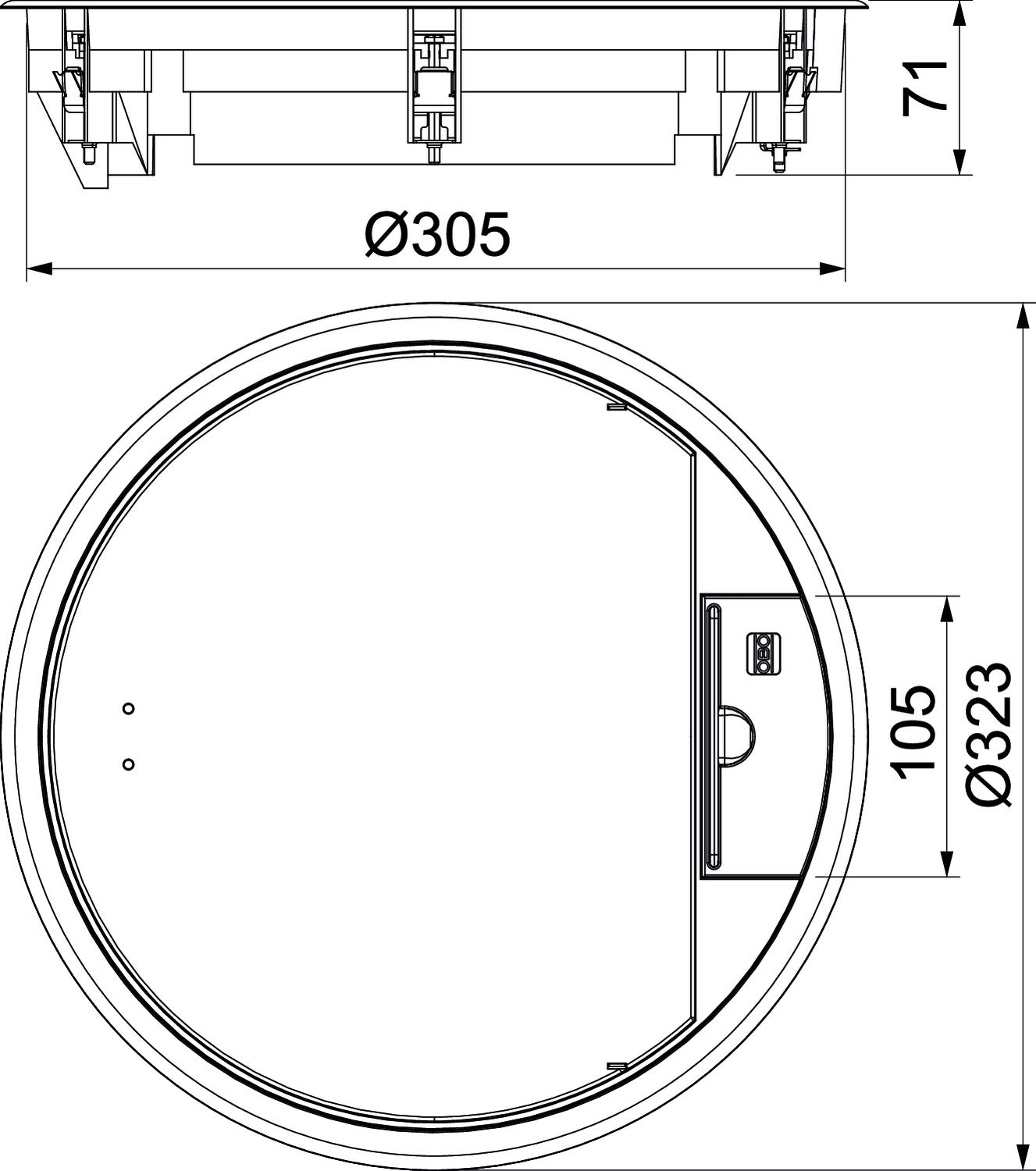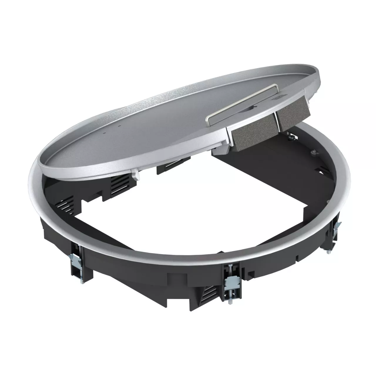Kaseta zasilająca okrągła na 12 x Modul 45 w 3 uniwersalnych puszkach instalacyjnych UT4, do uniwersalnego zastosowania w systemach kanałów i podłogach systemowych.