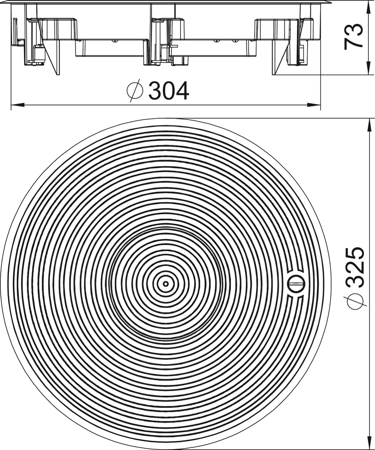 Kaseta zasilająca z tubusem do podłóg czyszczonych na mokro, na 12 x Modul 45 w 3 uniwersalnych puszkach instalacyjnych UT4, do zastosowania w systemach kanałów i w podłogach systemowych.