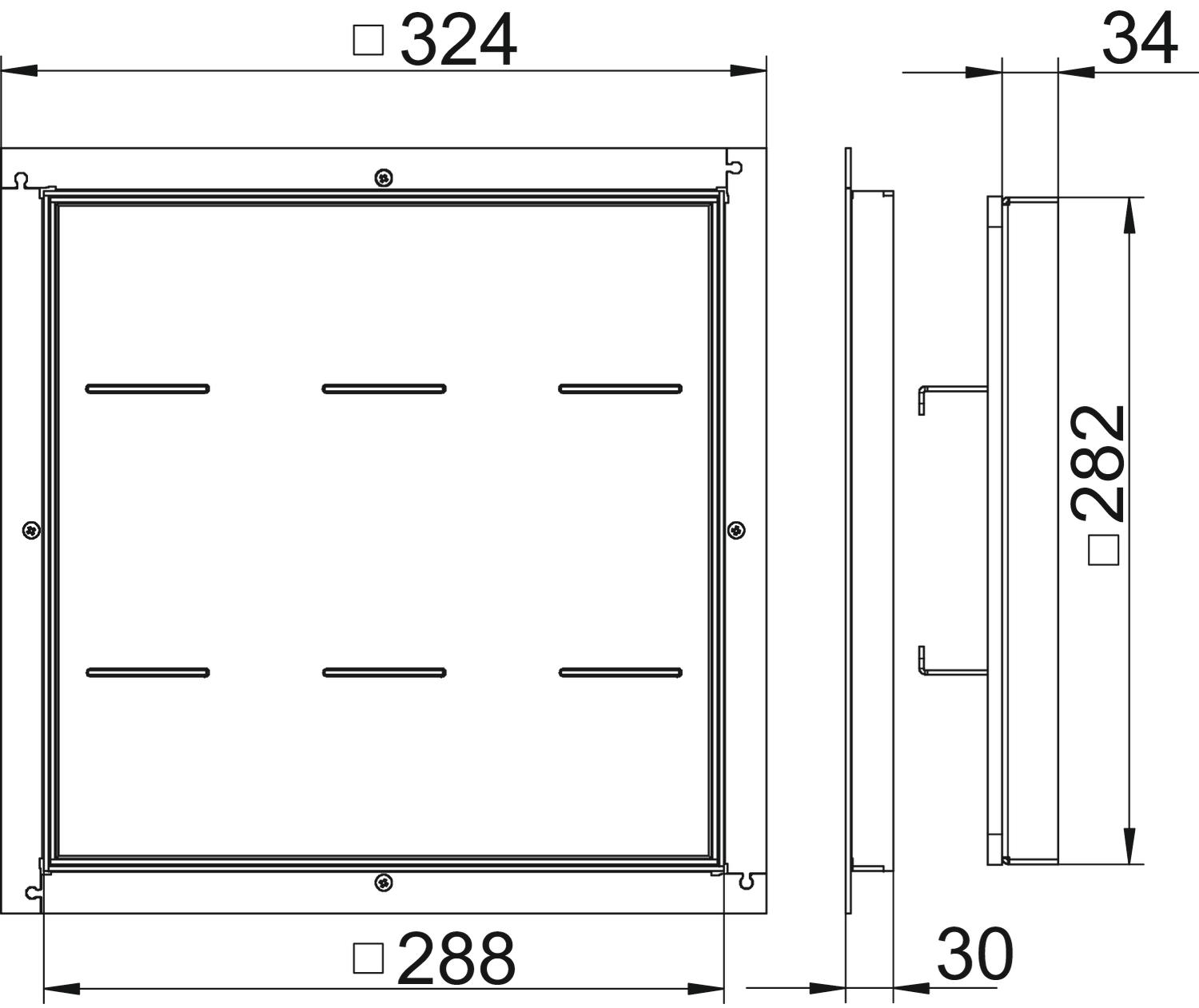 Rama kasetonowa „zaślepiona" do zamknięcia otworu rewizyjnego na puszce podpodłogowej UZD250-3 w podłogach czyszczonych na sucho i mokro. Klasa obciążeń 2 do 20 kN. Przeznaczona tylko do podłóg gładkich.